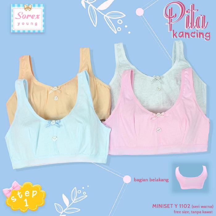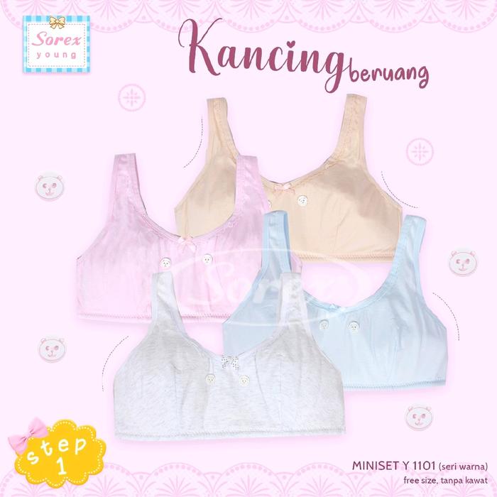 SOREX YOUNG (3PC, 6PC, 12PC) MINISET ANAK PEREMPUAN BUSA TIPIS STEP 1/TAHAP PERTAMA Y1101, Y1102, Y1103 KATUN - Y1103, SERI 3PC