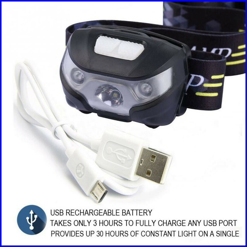 Senter Kepala Headlamp Flashlight Rechargeable Usb Motion Sensor