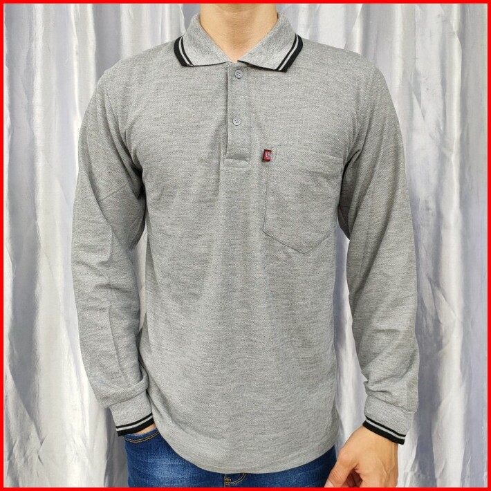 Kaos Krah Polo Shirt Pria Abumisty Saku Lengan Panjang Uk L Xl Xxl