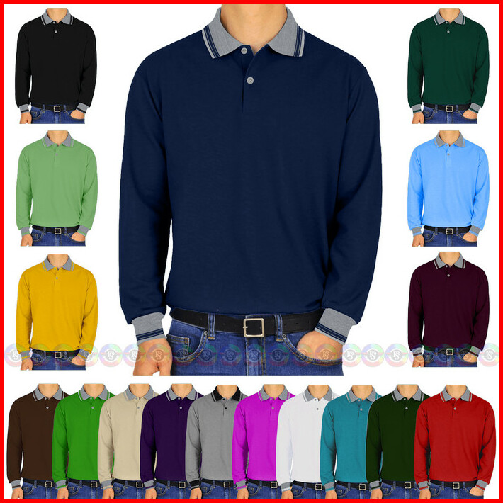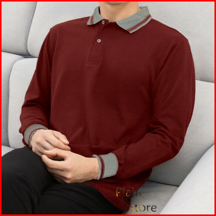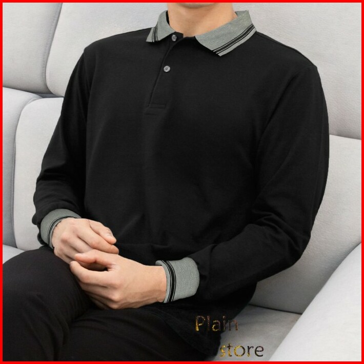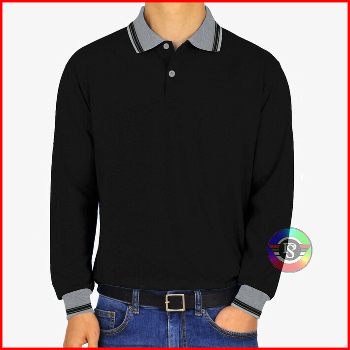 Ps Kaos Polo Lengan Panjang Kaus Polos Kerah Lis Polo Shirt Dewasa
