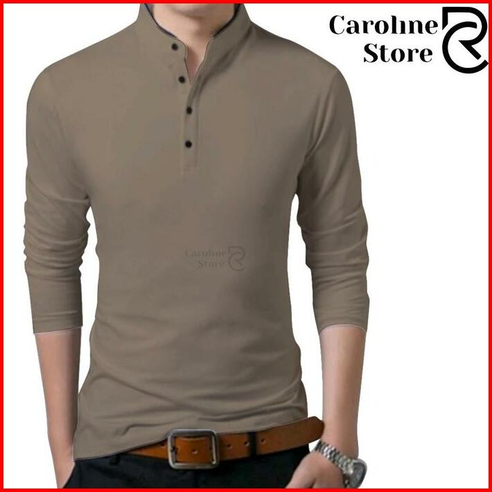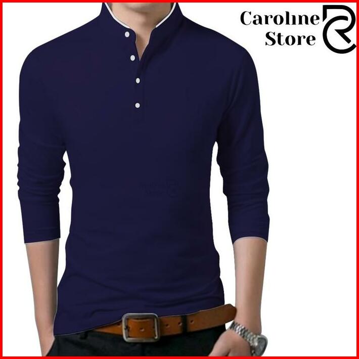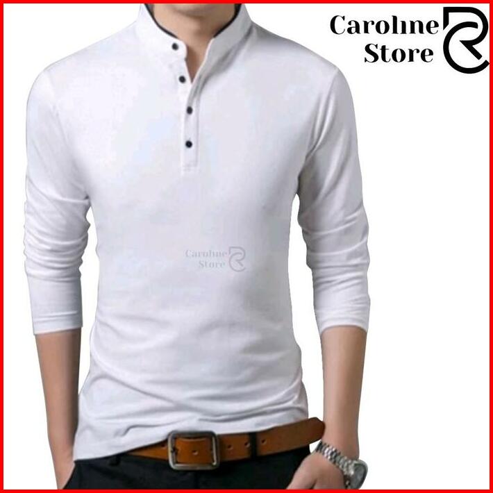 Kaos Polo Shirt Kerah Shanghai Lengan Panjang Pria