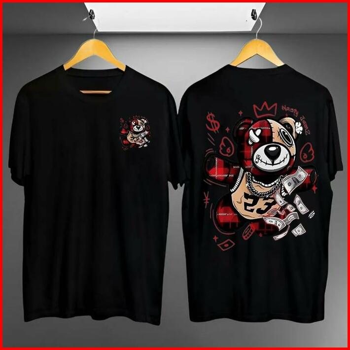 Kaos Distro Motif Skate Bear Sablon Digital Printing Unisex Lengan Pendek