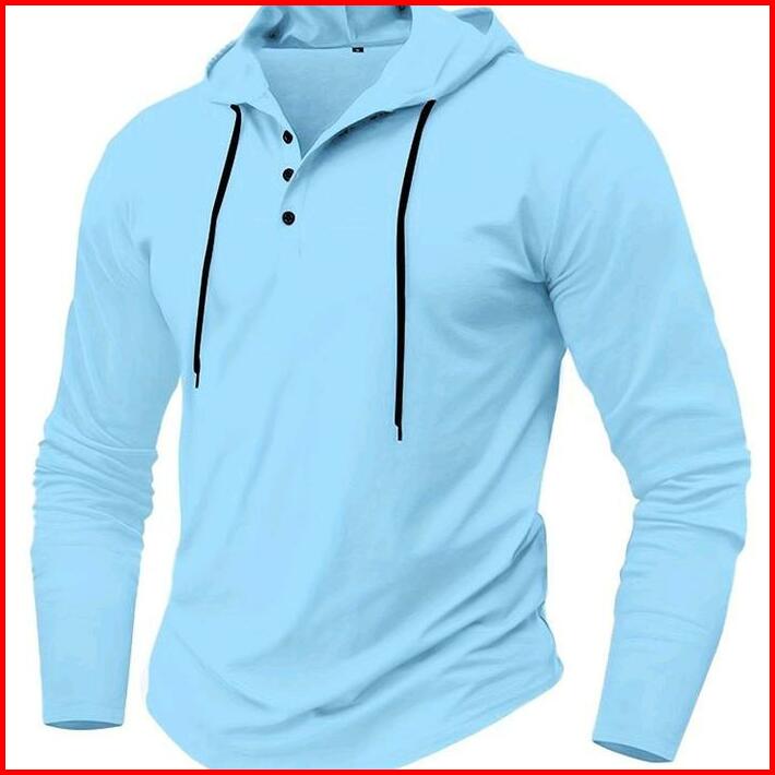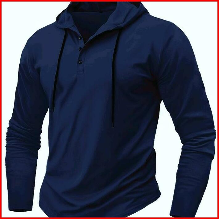 Kaos Hoodie Polos Pria Bertopi Lengan Panjang Model Kekinian Katun Spandeks Nyaman Kasual Terbaru Biru Navy Hitam