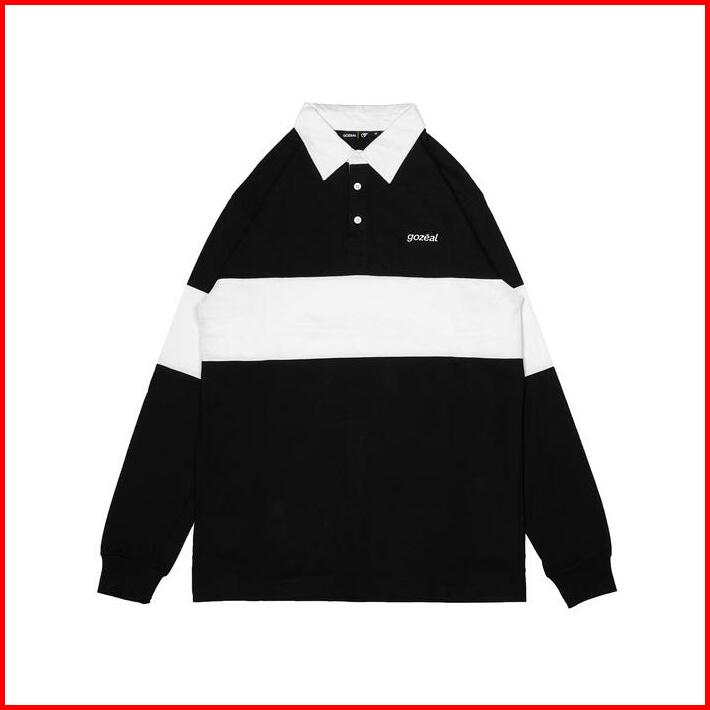 Gozeal Longsleeve Rugby Charlotte Kaos Polo Shirt Lengan Panjang Pria Wanita Unisex Kaos Polo Berkerah Katun