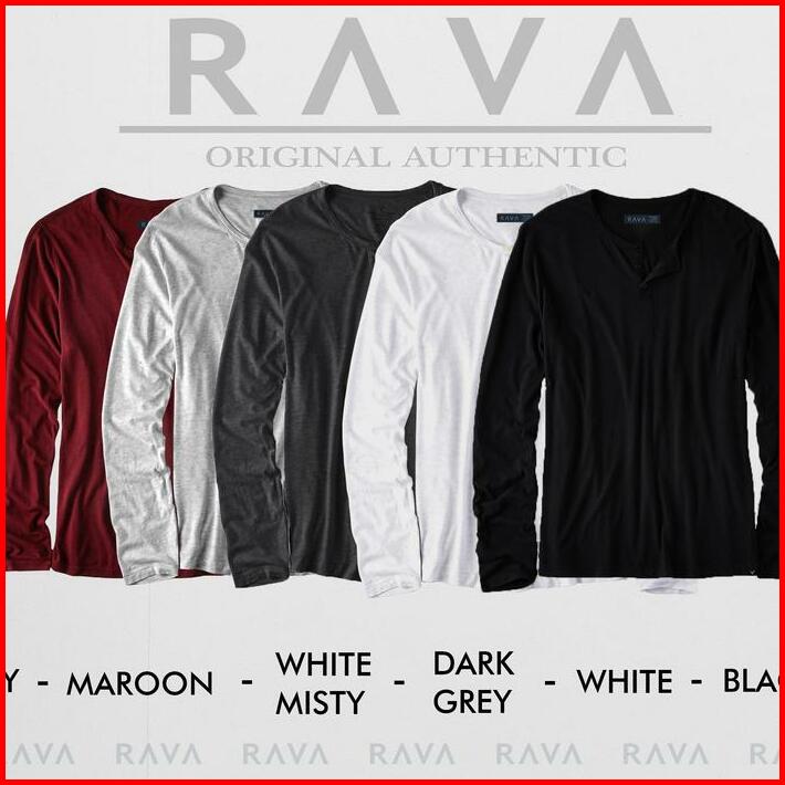 Rava Baju Kaos Pria Henley Polos Lengan Panjang Premium Katun Lembut Quality By Rava Original Promo Best Seller Nyaman