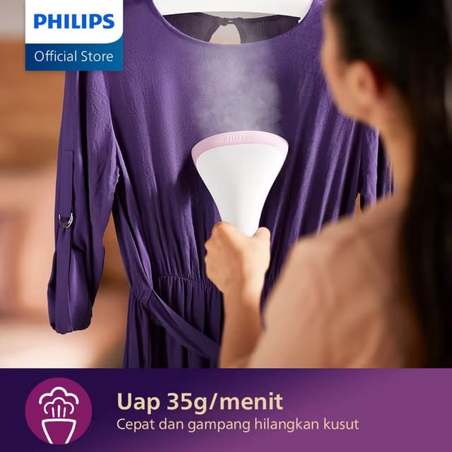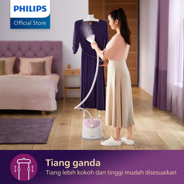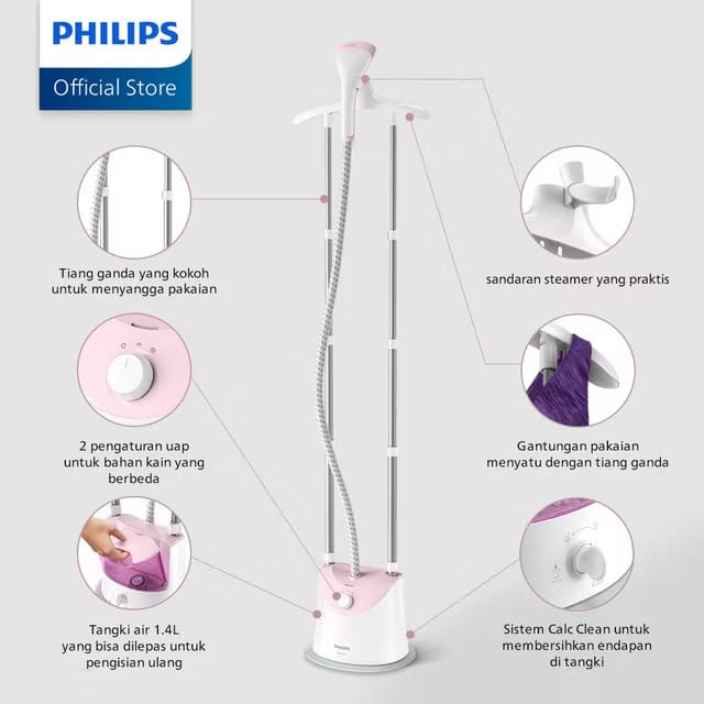 Philips Stand Steamer GC485/40 (Gratis Style Mat) - Pastel Pink, Setrika Uap Listrik, Strika Uap, Tangki Air 1.4L, 1800W