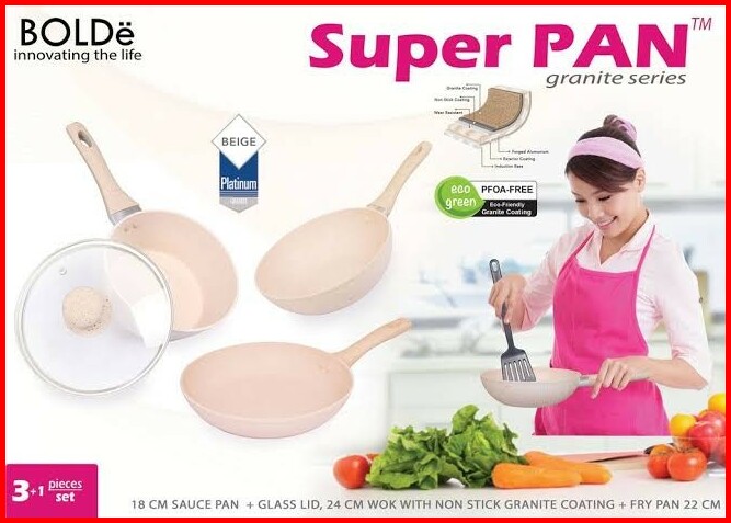 Bolde Super Pan Set 3 1 Panci Granite Ceramic Cookware Induksi Beige