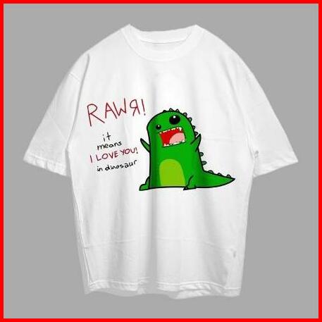 Vaba Oversized Rawr Dinosaur Tshirt Kaos Streetwear Unisex Tee Combed Pria Katun Baju Distro Pendek Oversize Panjang