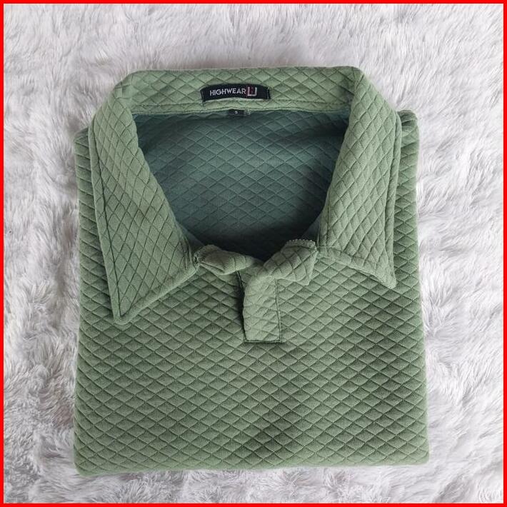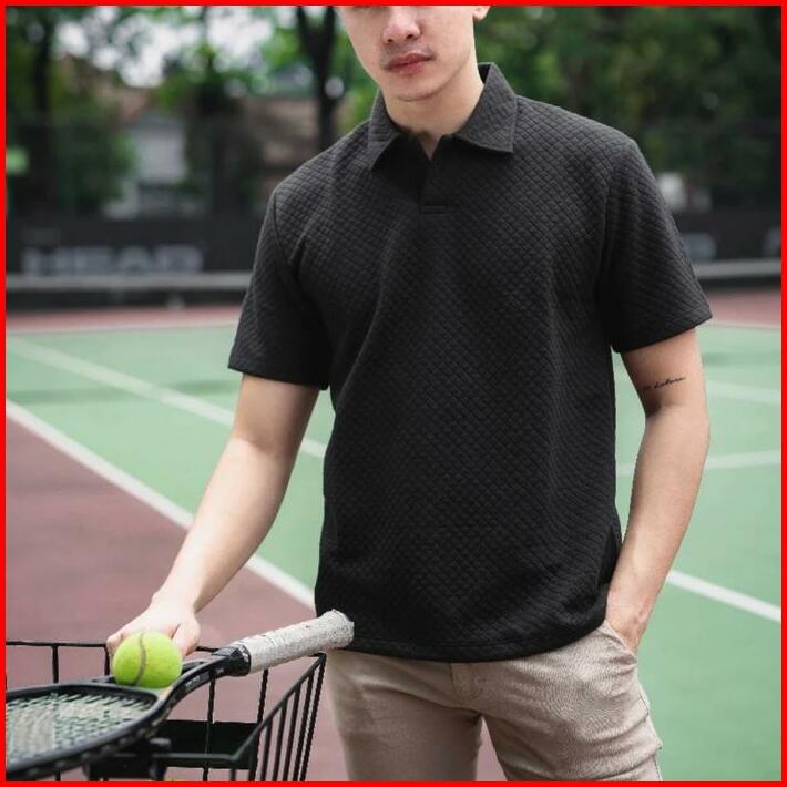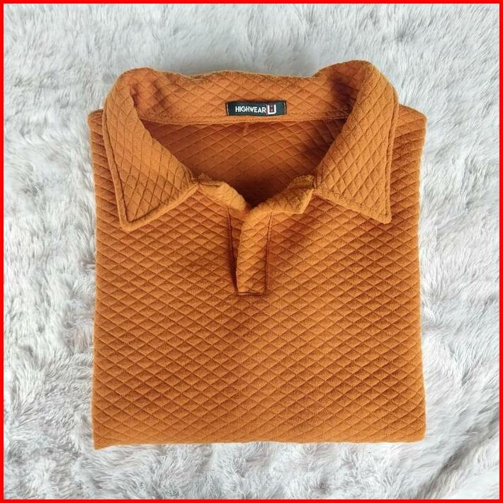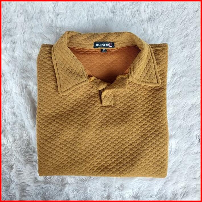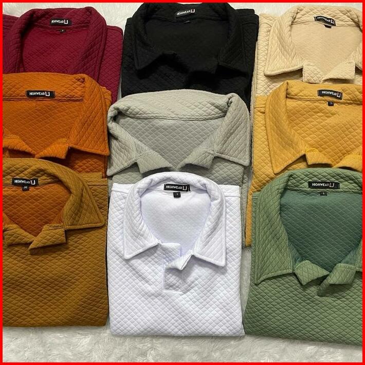 Highwear Tshirt Kaos Polo Katun Diamond Knitt Berkerah Motif Kain Panjang Dewasa Pria Tangan Pendek Unisex