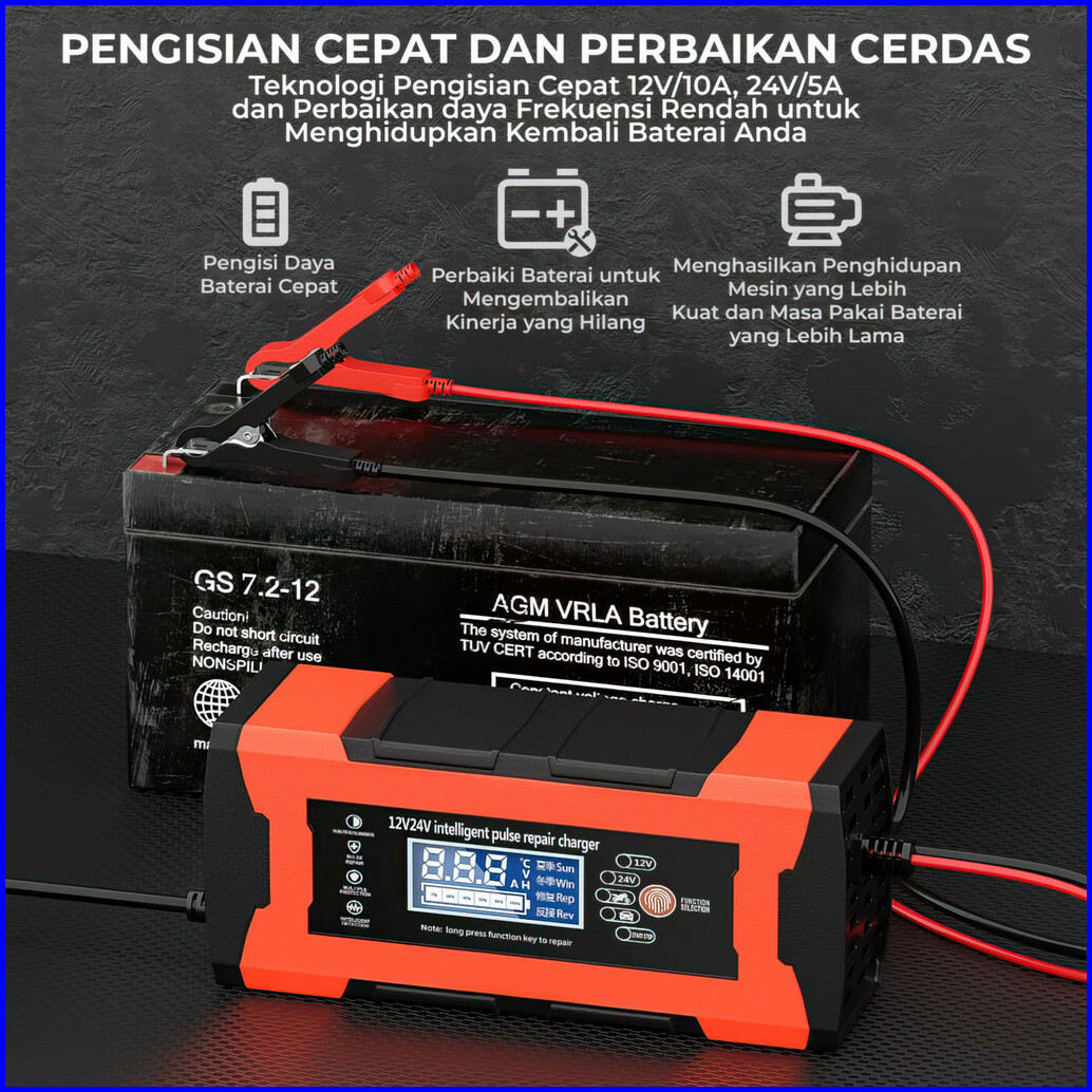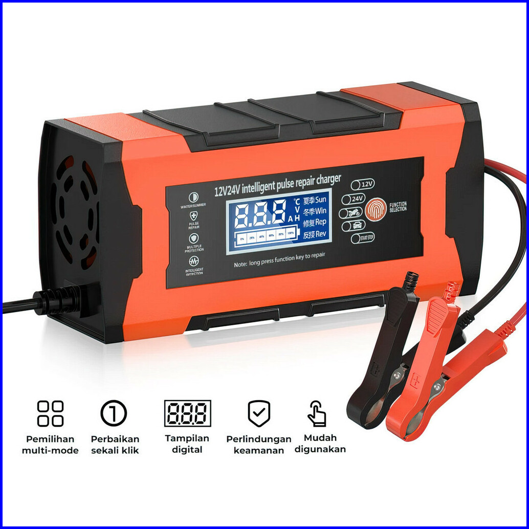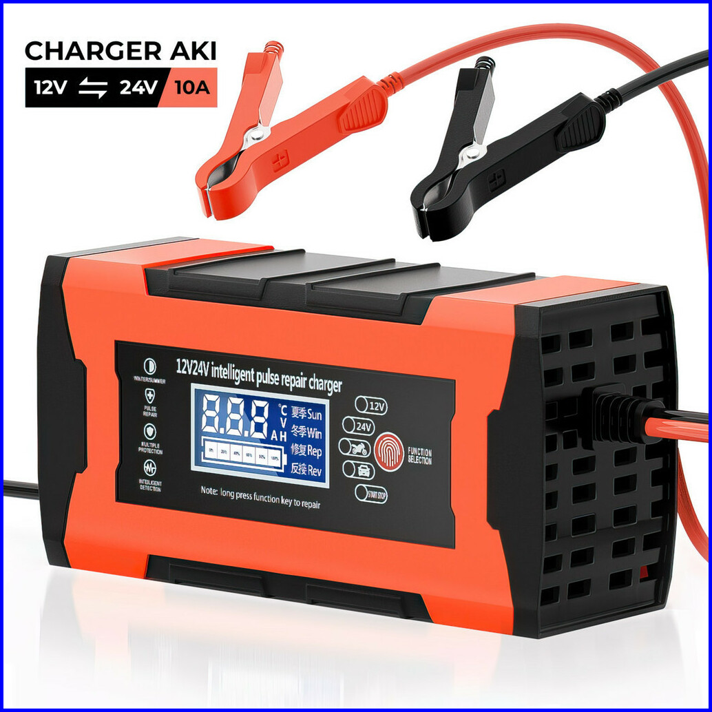 Suksestech Charger Aki Portable 12v-24v 10a Untuk Motor Dan Mobil Dengan Layar Lcd 24v12a