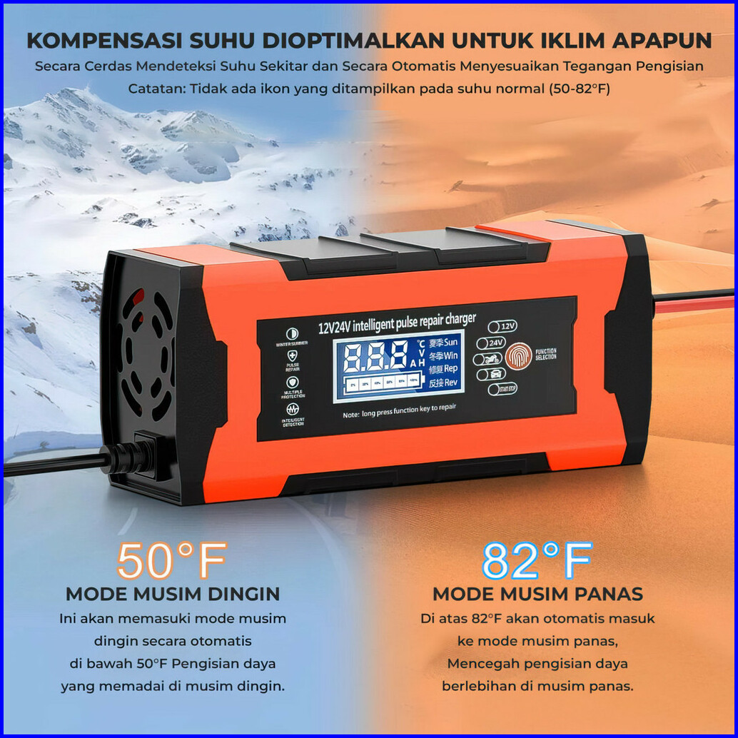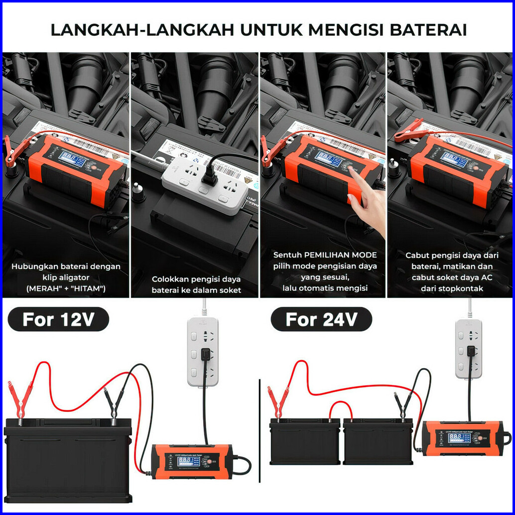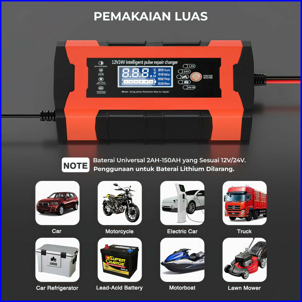 Suksestech Charger Aki Portable 12v-24v 10a Untuk Motor Dan Mobil Dengan Layar Lcd 24v12a