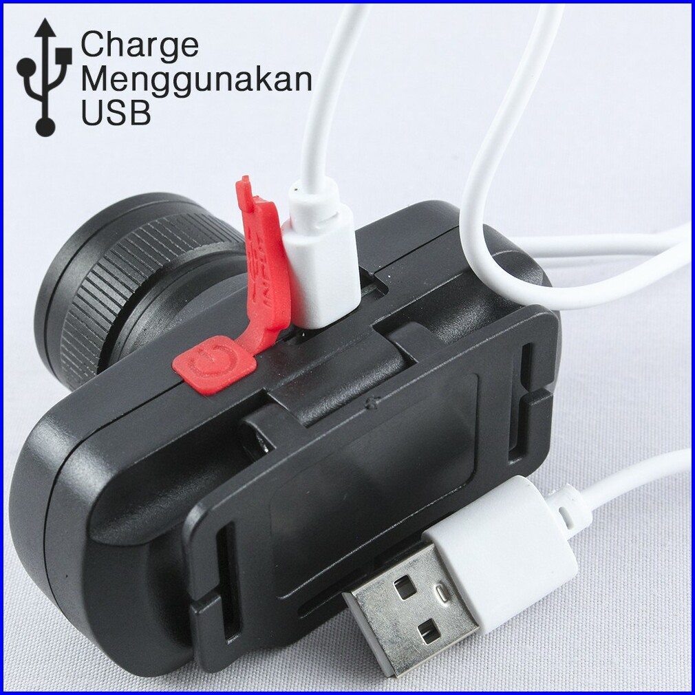 Suksestech Senter Cas Kepala Headlamp 3 Mode Free Usb Charger Import Waterproof 873