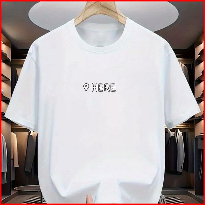 Baju Kaos Distro Oblong Lengan Pendek Katun Combed Dewasa Pria Wanita Logo Motif Here Print Digital Premium Super