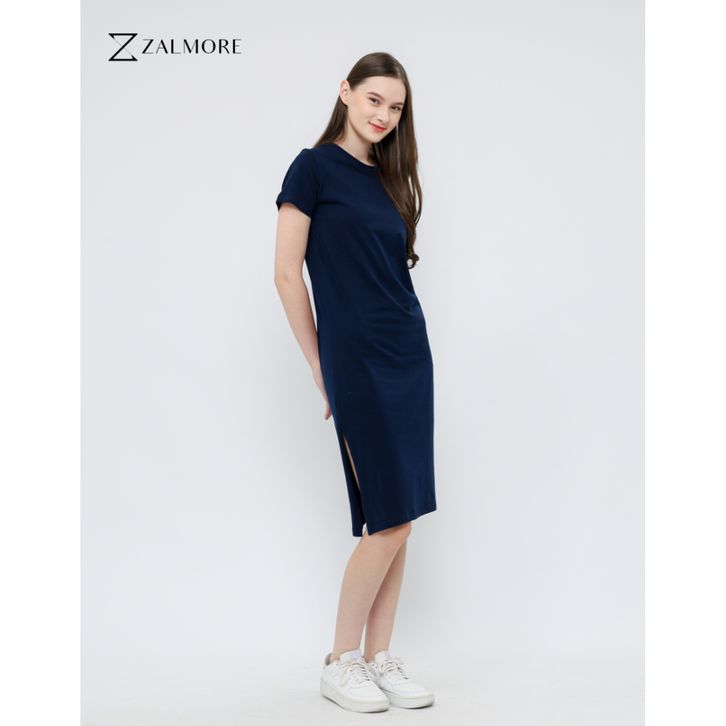 Midi Dress Zalmore Basic with Slit Premium Cotton/Midi Dress Wanita Terlaris