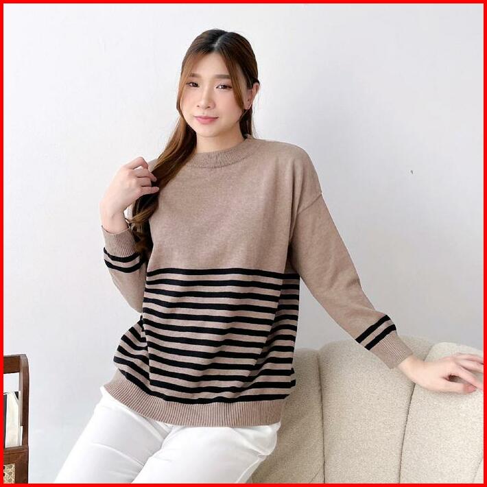 Eiko Knit Tops Atasan Sweater Rajut Katun Halus Adem Wanita Tangan Panjang Knitwear Top