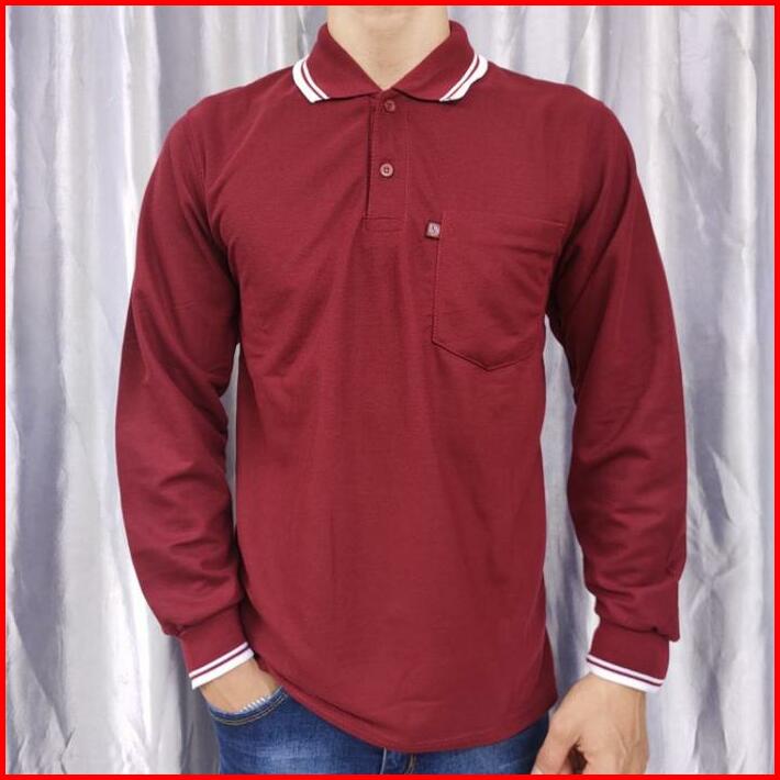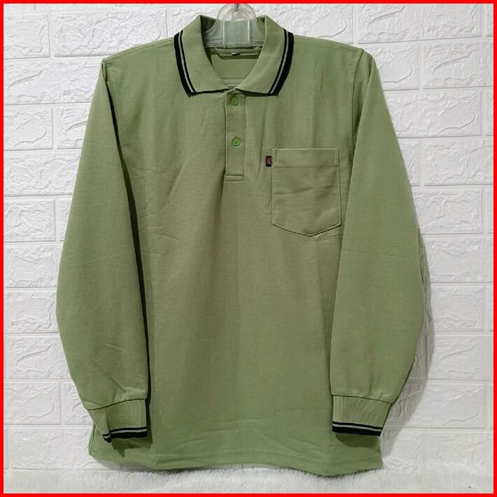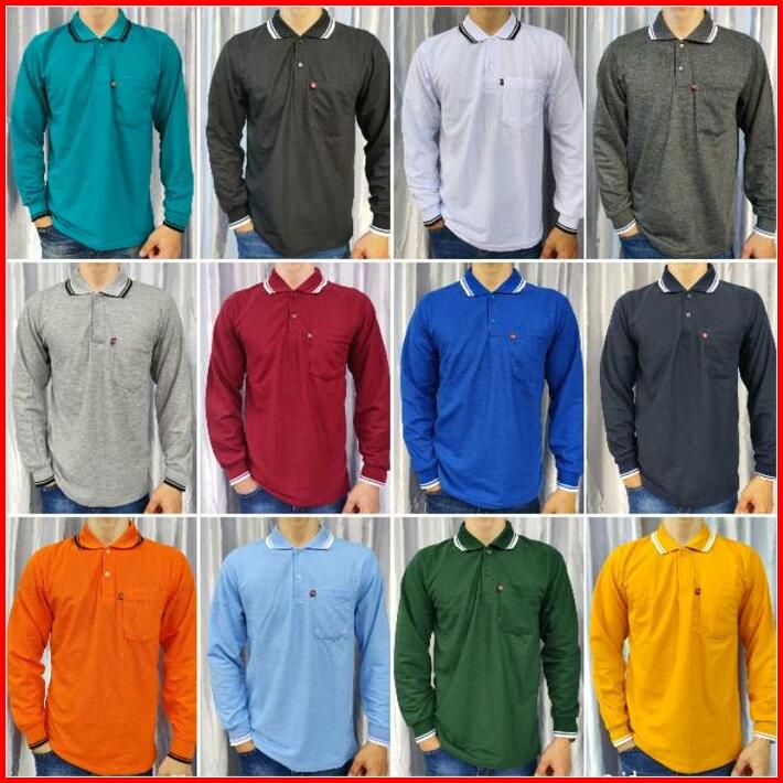 Kaos Krah Polo Shirt Kerah Polos Lakos Pria Wanita Dewasa Saku Noveli Lengan Panjang Uk L Xl Xxl Baju