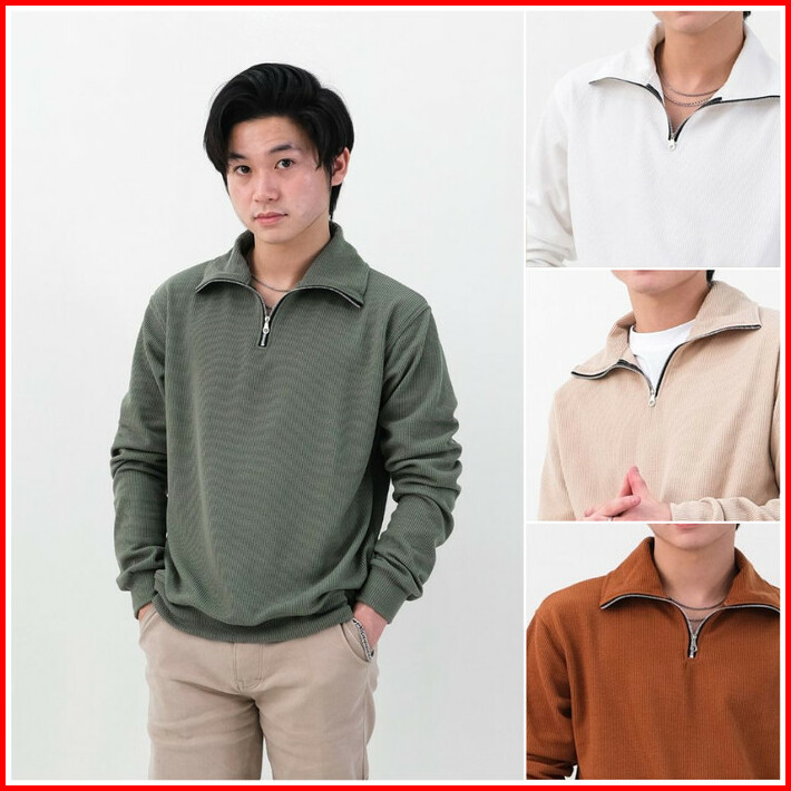 Kaos Polo Shirt Pria Kerah Lengan Panjang Zipper Knit