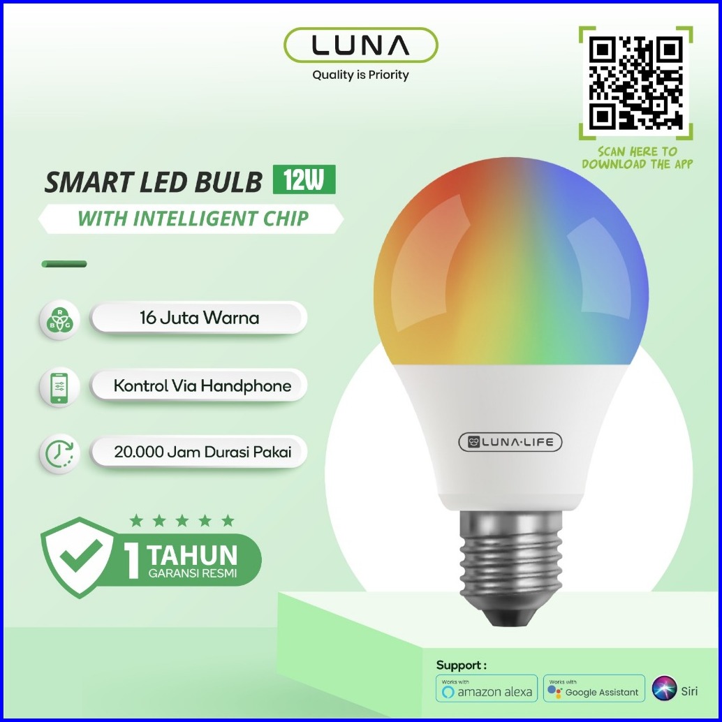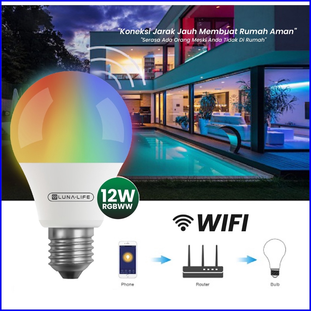 Luna Life Smart Lamp 12 Watt Light Bulb Rgbww Wifi Wireless Iot - Bohlam Lampu Tidur