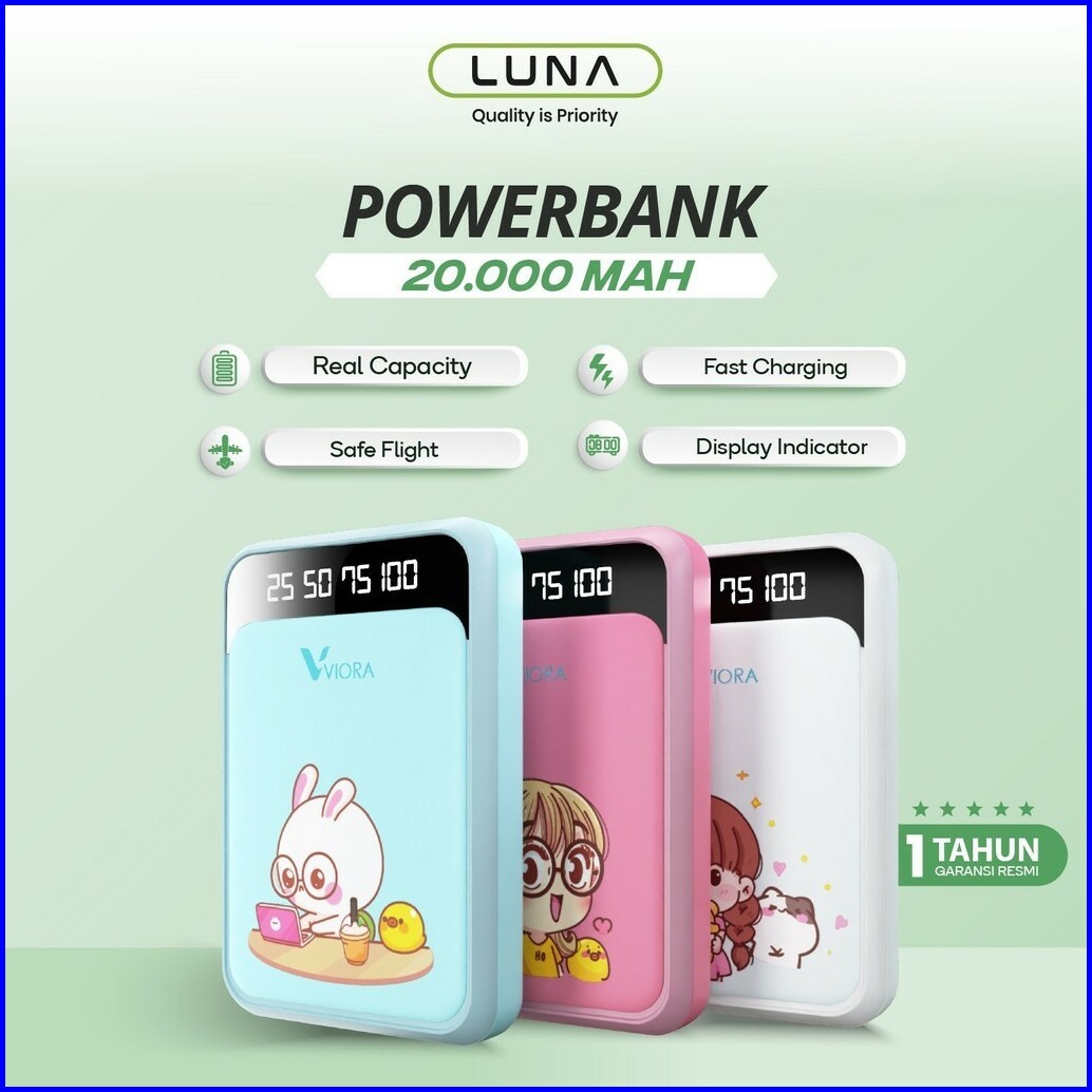 Luna Powerbank Viora 20000 Mah Fast Charging Dual Port Usb Type C