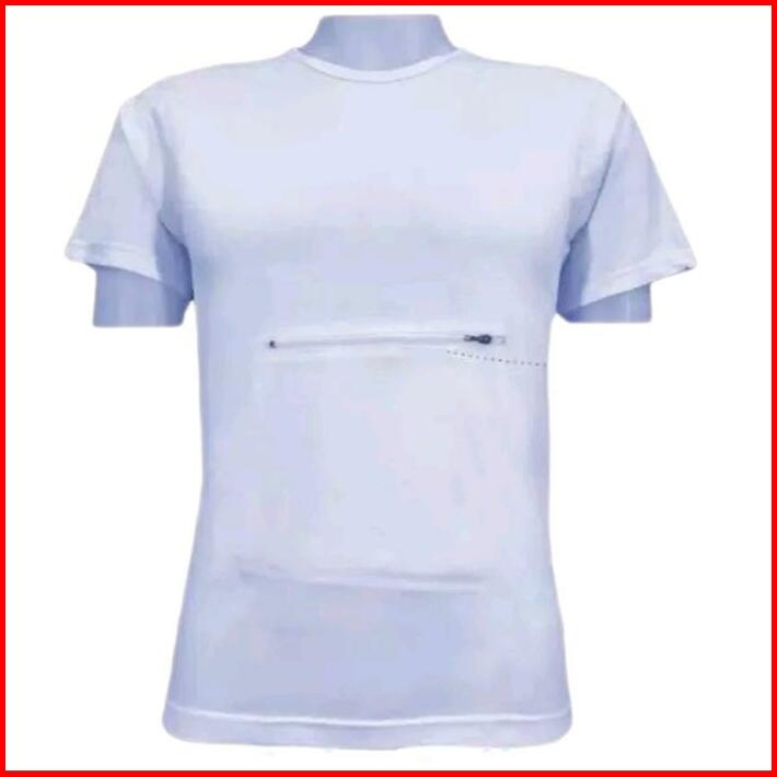 3 Pcs Kaos Oblong Haji Umroh Kantong Depan Sleting Katun Pria Putih Baju Nyaman Pendek Panjang Polos