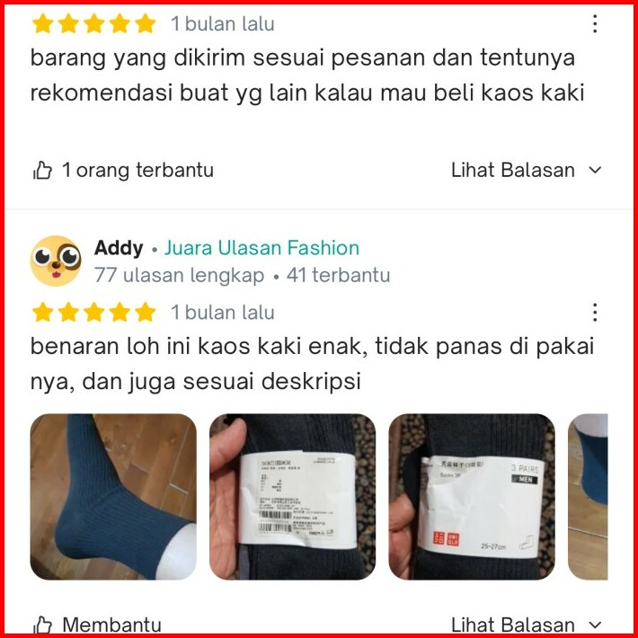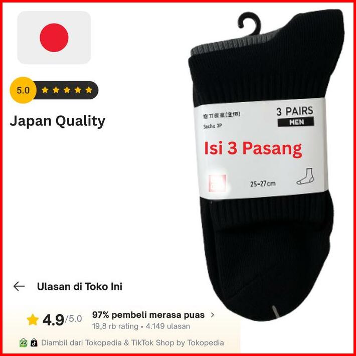 Kaos Kaki Uniqlo Supima Cotton Original Pria Import Jepang Nyaman