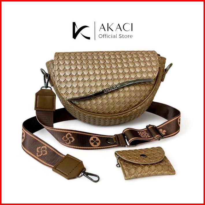 Sling Bag Wanita Shafa Akaci 05-8260 Bahan Pvc Sintetis 1 Ruang Tas Wanita Kekinian Polos Simpel Mewah Tas Pesta Sale Se