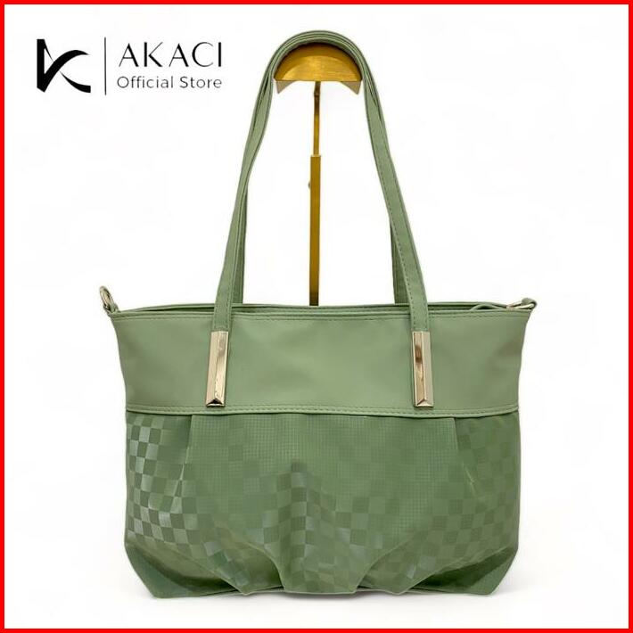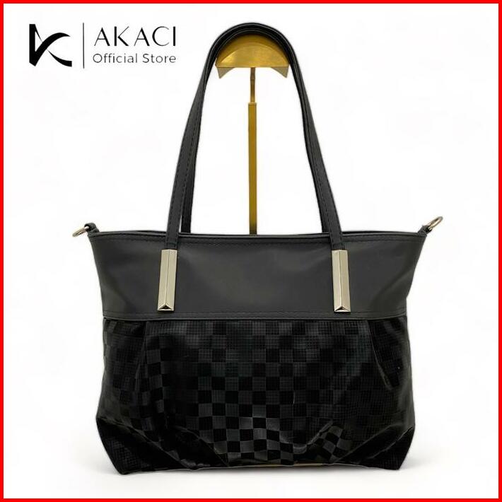 Akaci Store L Kiya Tote Bag Wanita Muat Laptop 11in 09-8149 Bahan Nilon Tebal Kekinian Style Cewek Kerja Kuliah Kantor K