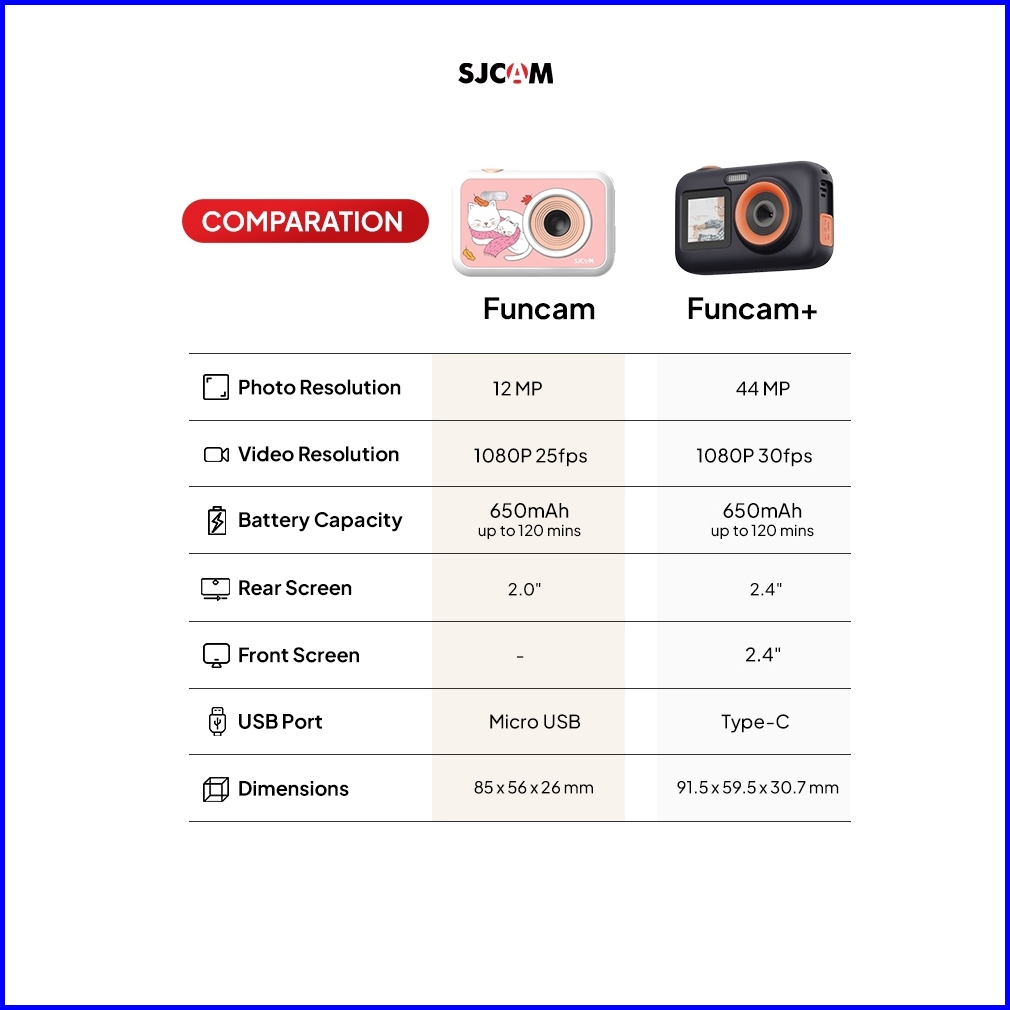 Sjcam Funcam Kids Camera Kamera Mini Pocket Digital Anak-anak Kids Cam Video Foto Photograph Inch Lcd Hd 1080p - Blue