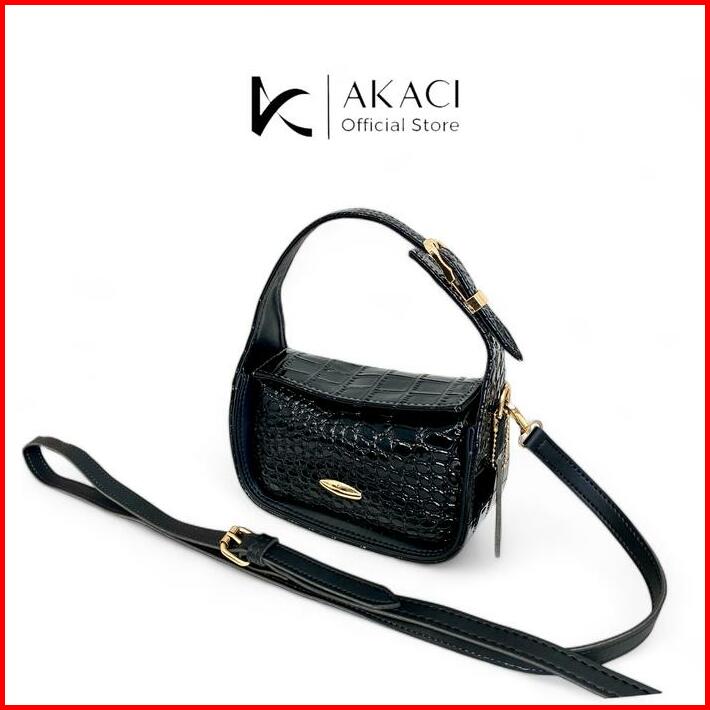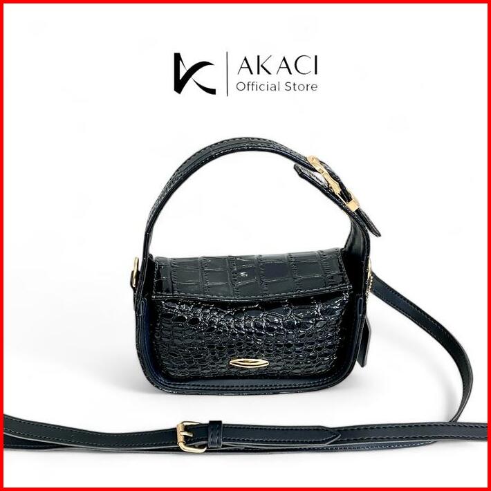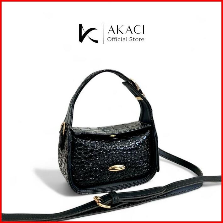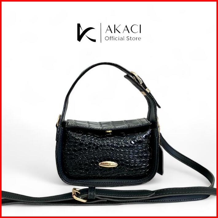 Hand Bag Wanita Alexa Akaci 05-8345 Bahan Croco Glossy 2 Ruang Tas Selempang Mewah Murah Terbaru Ibu Tas Pesta Cewek Luc