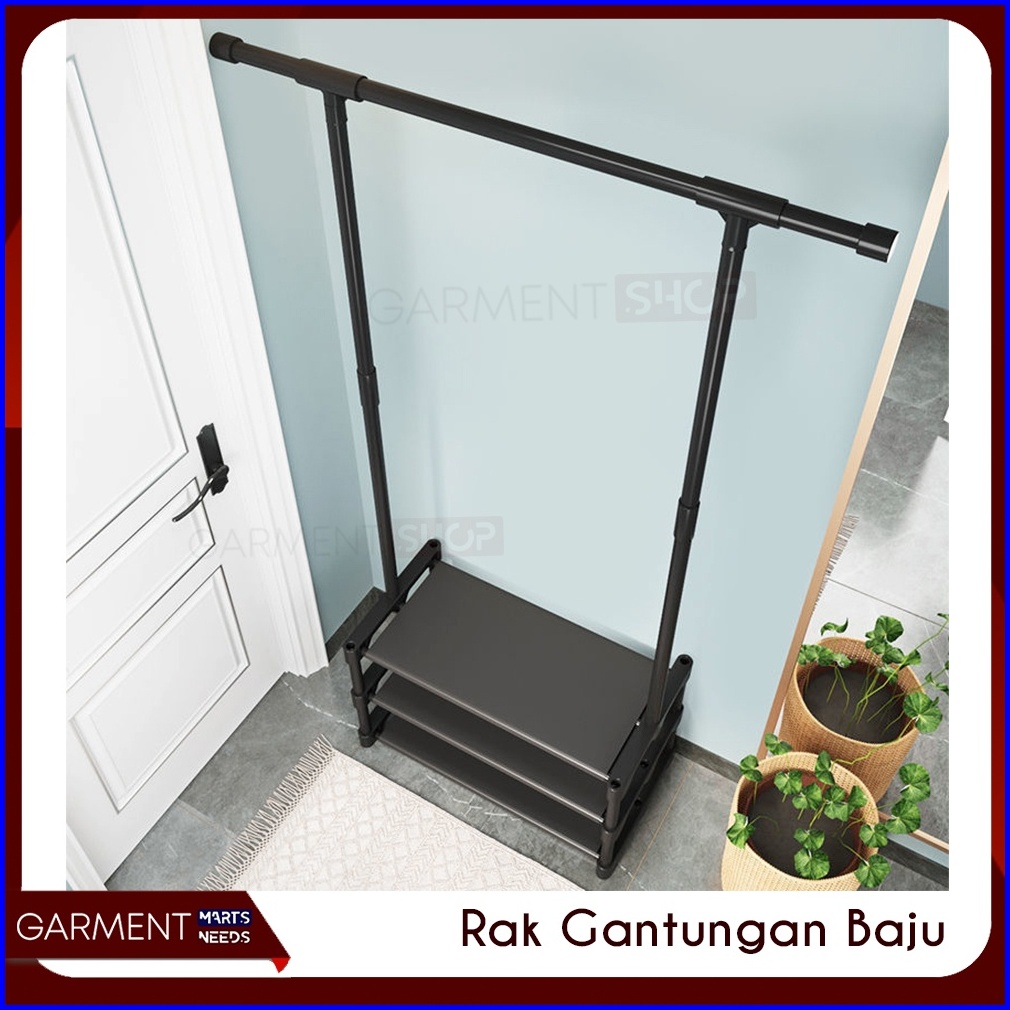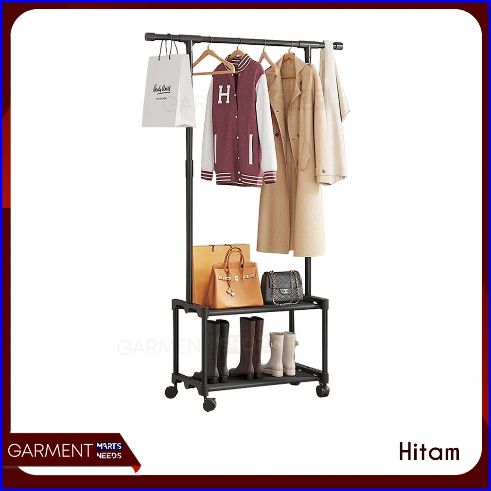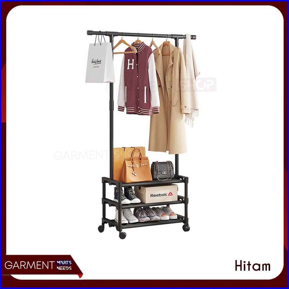 Stand Hanger Rak Gantungan Baju Tas Berdiri Rak Sepatu 3 Susun Jemuran Roda Besi Stainless