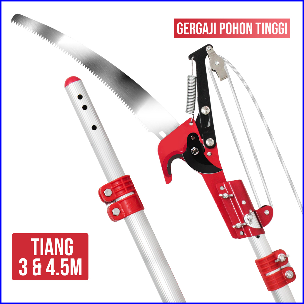 Suksestech Tongkat Pemotong Dahan Tiang Panjang Aluminium Gergaji Pohon 4.5 Meter 6666