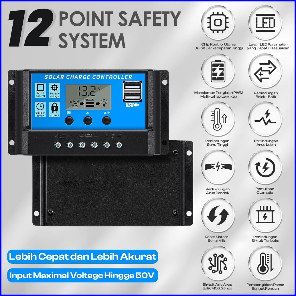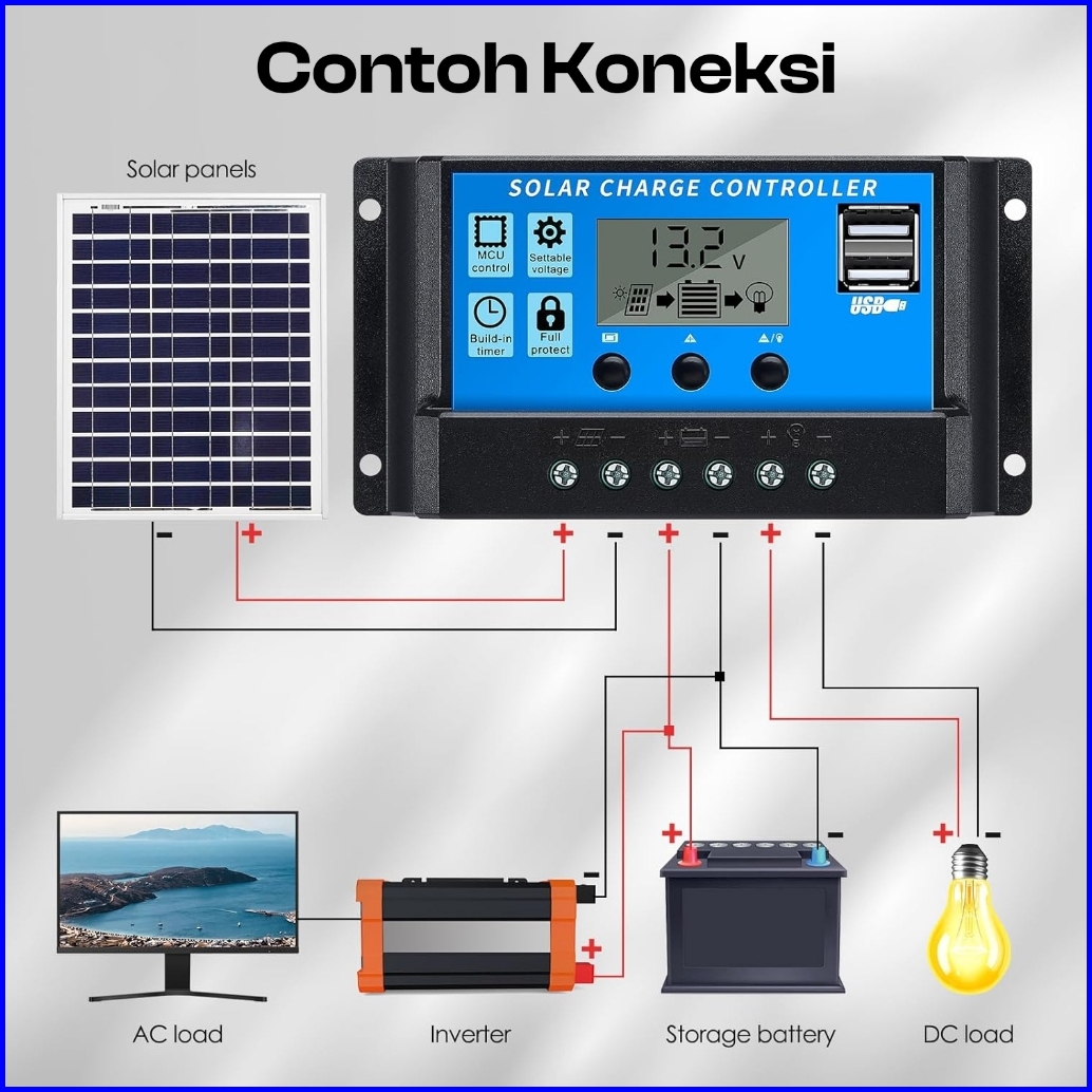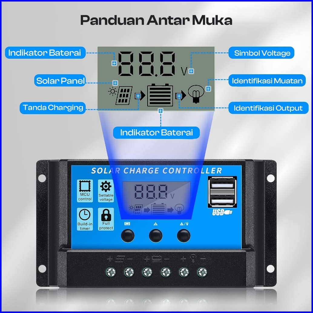 Suksestech Controller Panel Surya Charge Solar Charge 12v 24v Doble Usb Controller 20 A Hitam