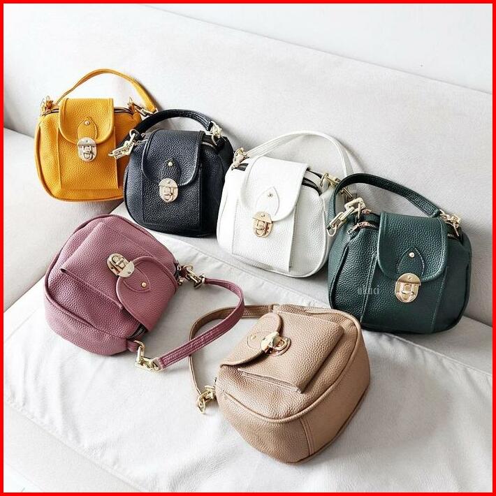 Bom-bom Tas Selempang Bulat Akaci 02-6869 Polos Kulit Wanita Slingbag Hand Bag