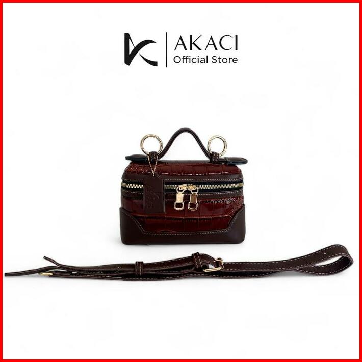 Tas Selempang Wanita Grace Akaci Hand Bag 10-8371 Bahan Croco Glossy 1 Ruang Tas Mini Muat Hp Lucu Elegan Mewah Murah Be