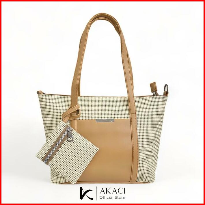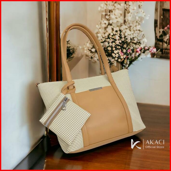 Akaci Store Nobi Tote Bag Wanita 09-8292 Bahan Sintetis Tartan 3 Ruang Ibu Kuliah Kerja Kantor Murah Terbaru Shoulder Ba