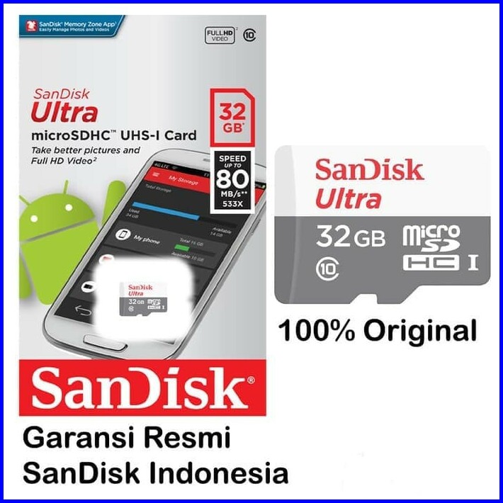 Memori Card Sjcam Sandisk Ultra Microsd Class 10 32gb Non Adaptor