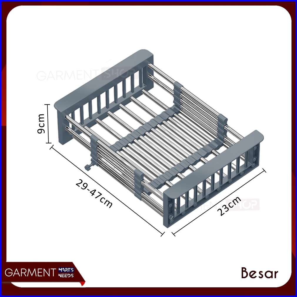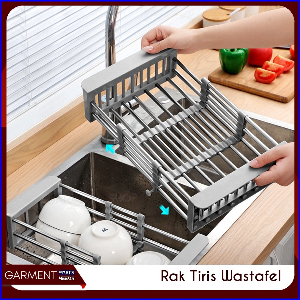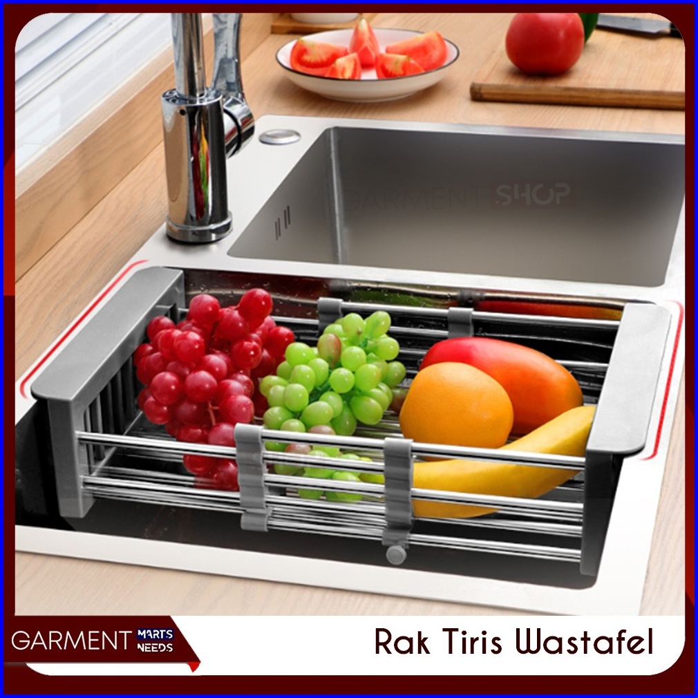 Keranjang Tirisan Wastafel Rak Pengering Buah Sayur Ikan Piring Gelas Peralatan Dapur Stainlees Kuat Ramah Lingkungan