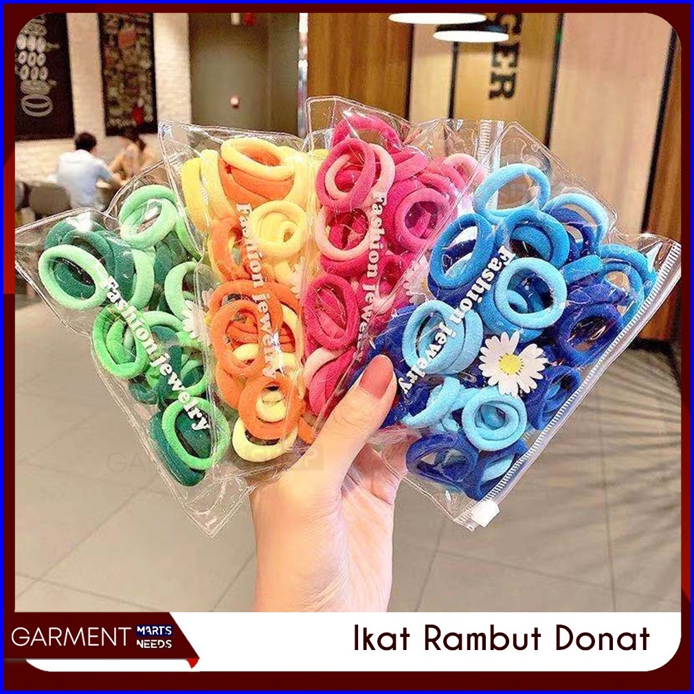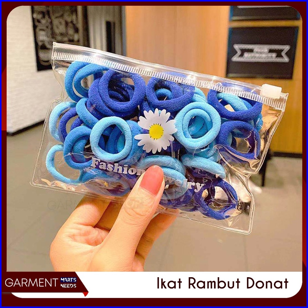 Ikat Rambut Donat Polos Warna Warni Korea Aksesoris Kunciran Rambut Anak Scrunchie Isi 50 Free Pouch