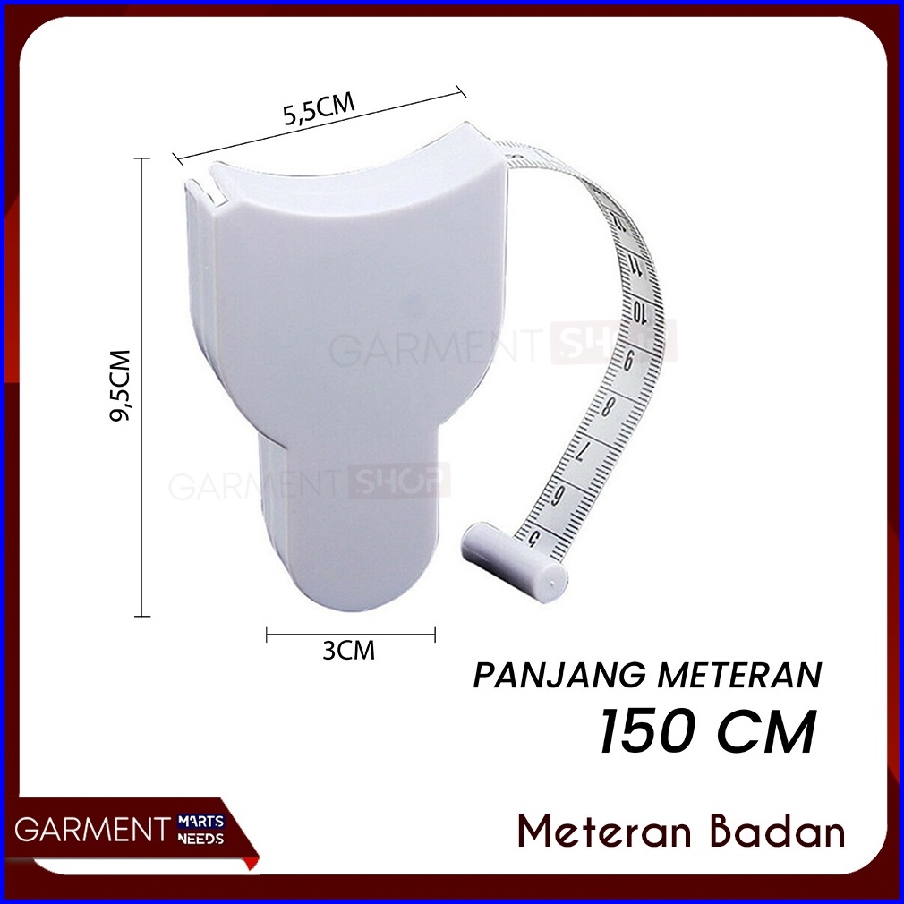 Meteran Gulung Pengukur Badan Kain Baju Paha Otomatis Lingkar Dada Portable Sendiri Mandiri Putih