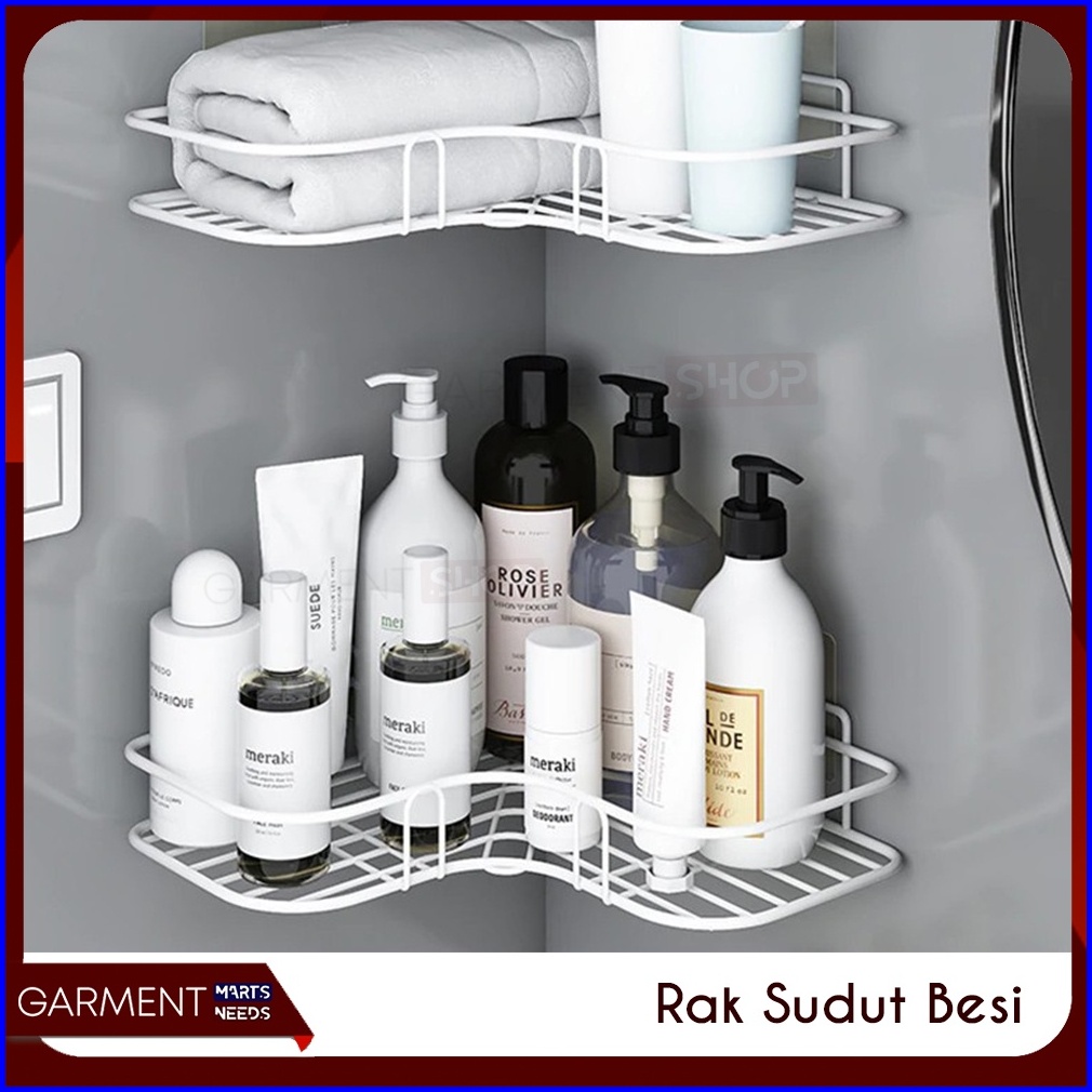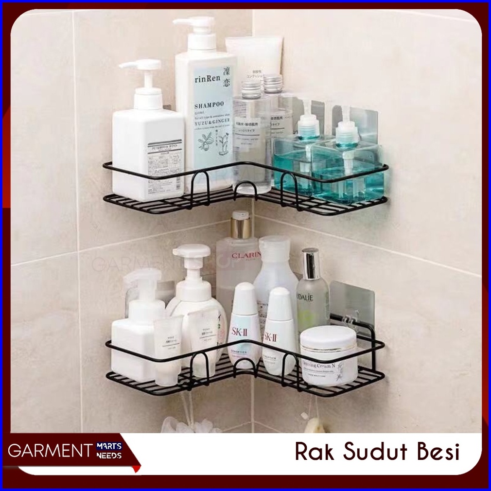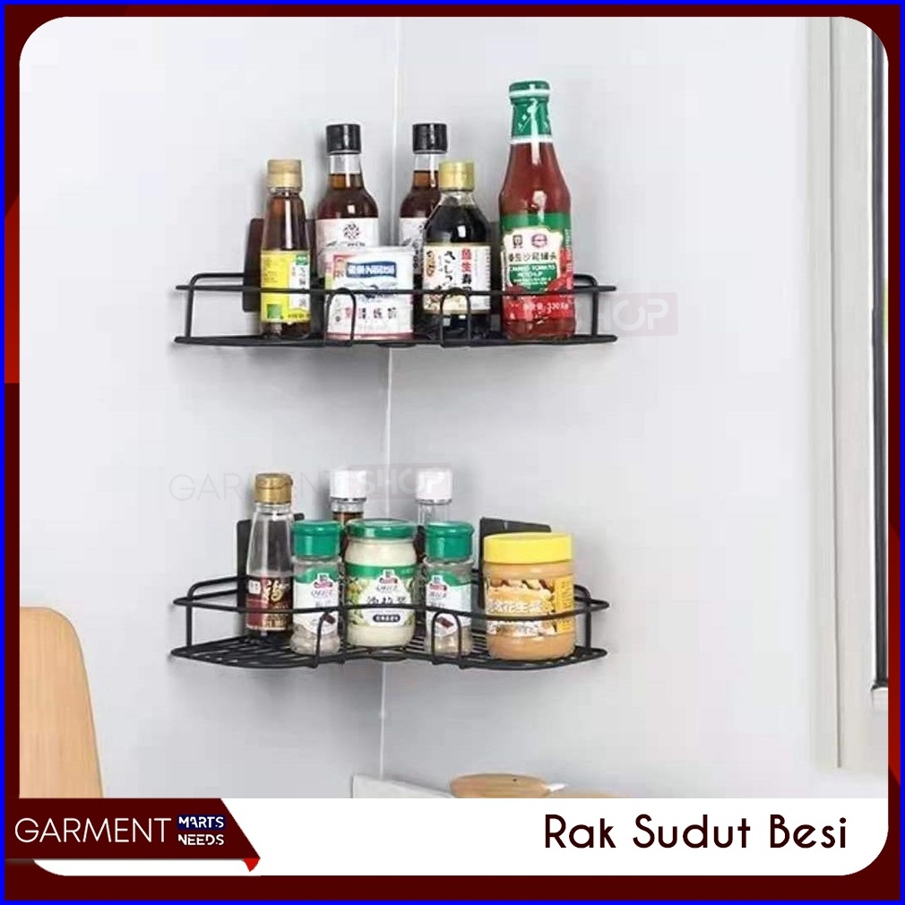 Rak Sudut Kamar Mandi Gantung Bahan Besi Tempel Dinding Tanpa Mur Baut Tempat Bumbu Dapur Serbaguna Kitchen Rack
