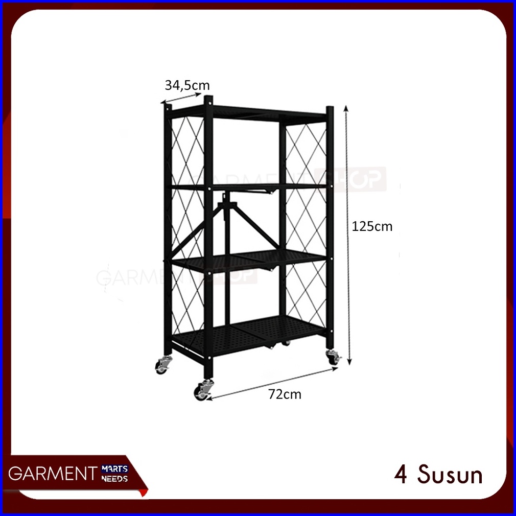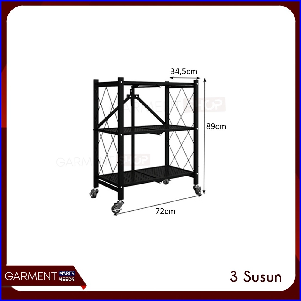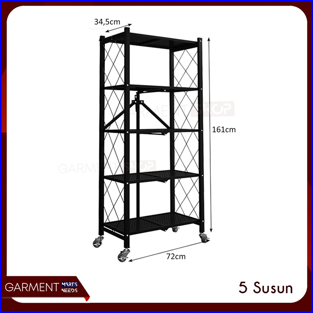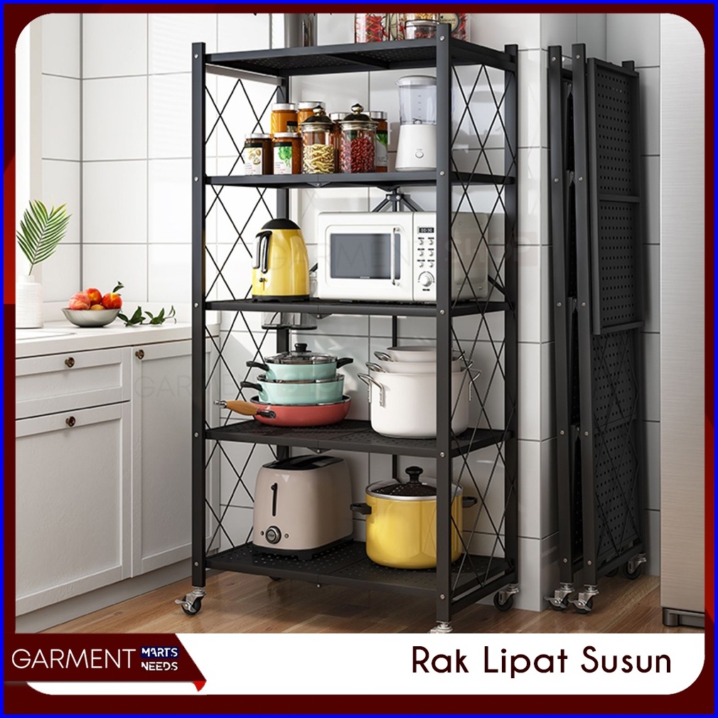 Rak Dapur Lipat Serbaguna Tanpa Mur Baut 3 4 5 Susun Stainless Steel Rumah Ringkas Praktis Hitam Besi Kuat Kokoh