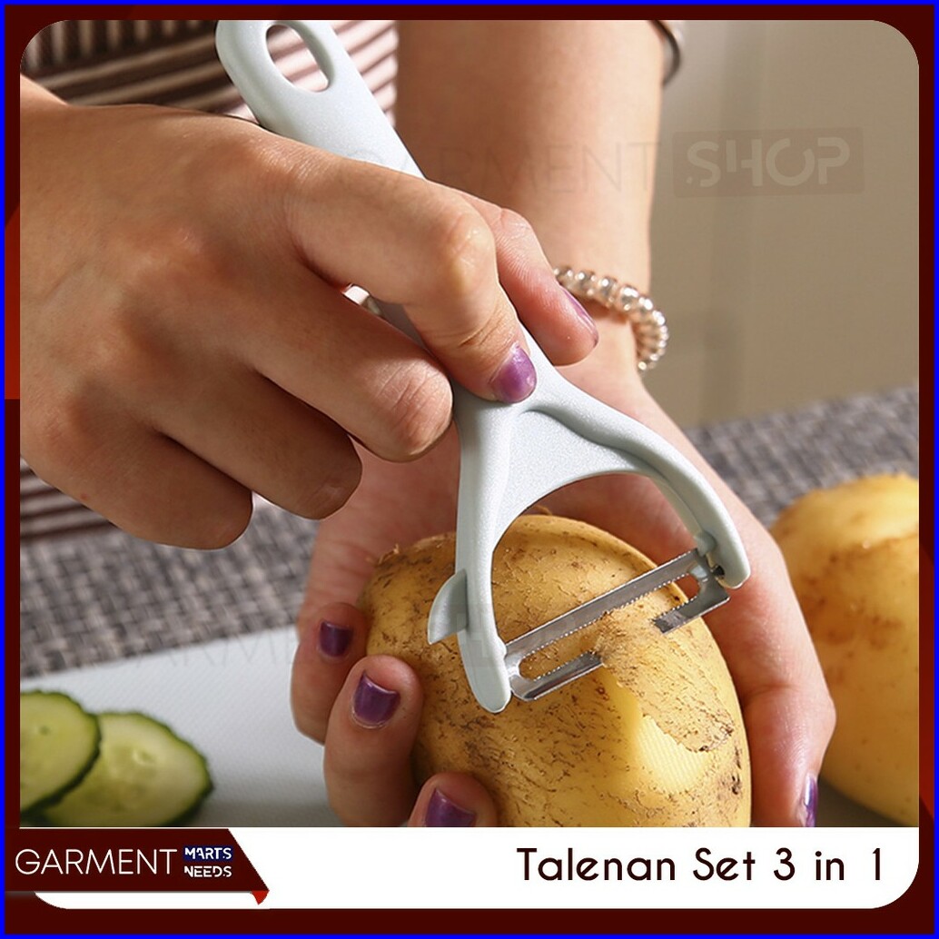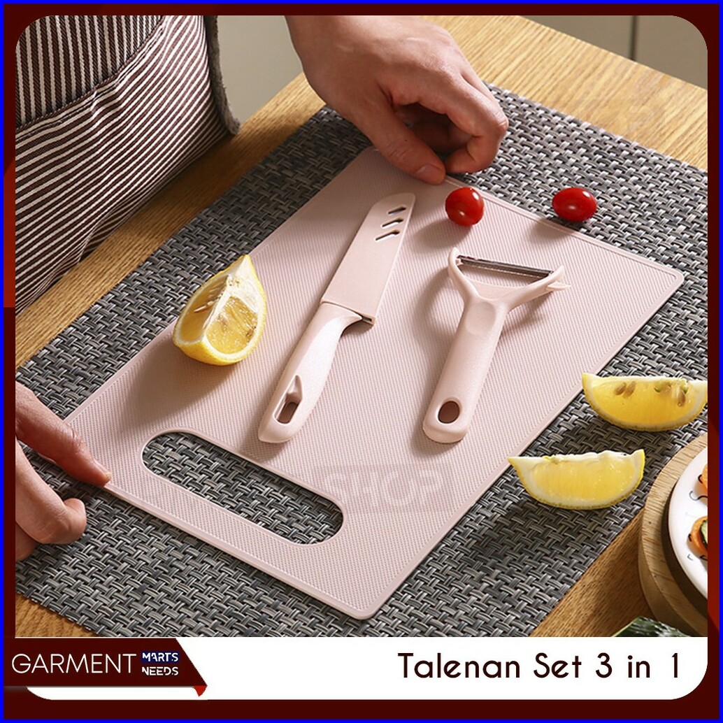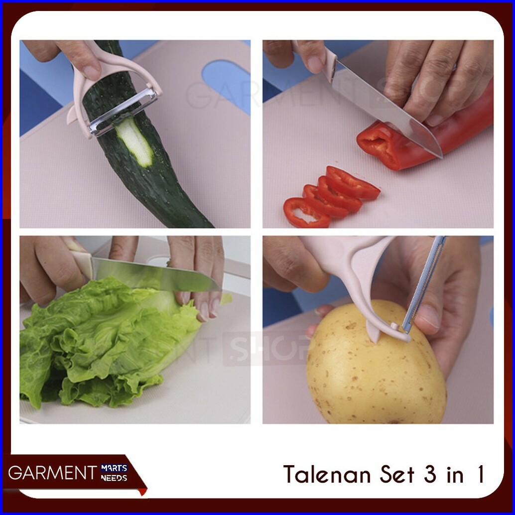 Pisau Set Talenan 3 In 1 Pengupas Kulit Buah Sayur Serbaguna Stainless