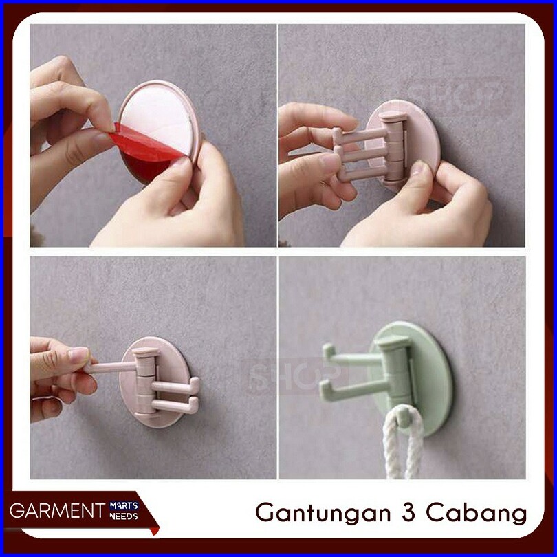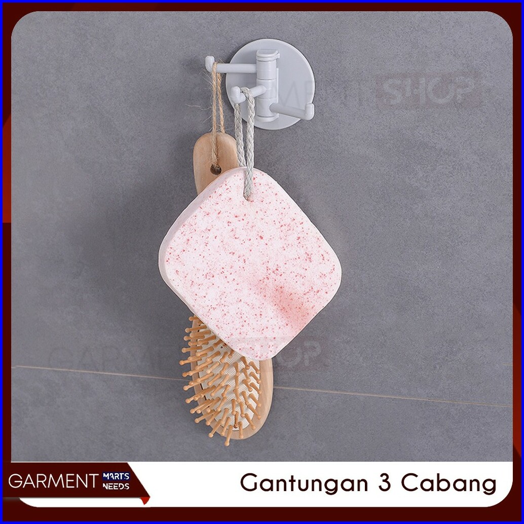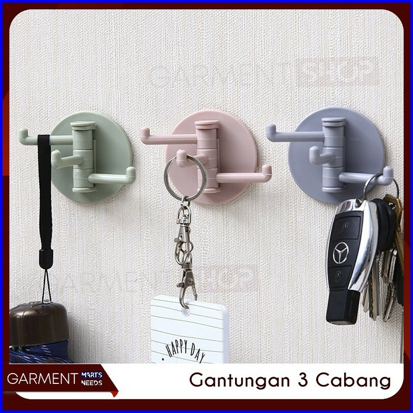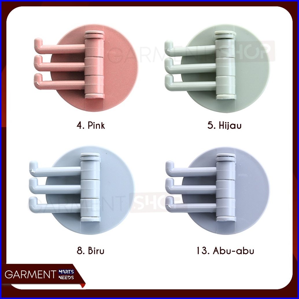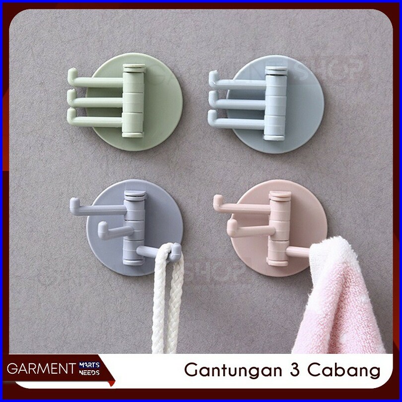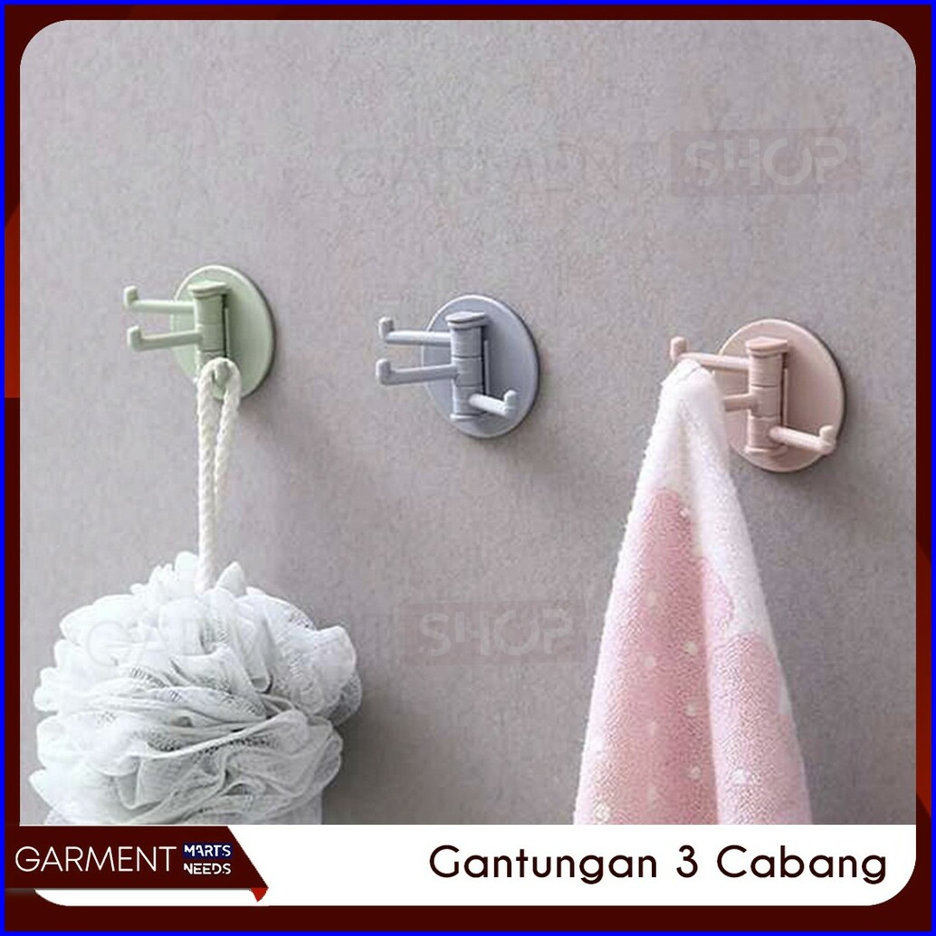 Gantungan Tempel Hook 3 Cabang Putar Hanger Tempel Dinding Kamar Mandi Dapur Serbaguna
