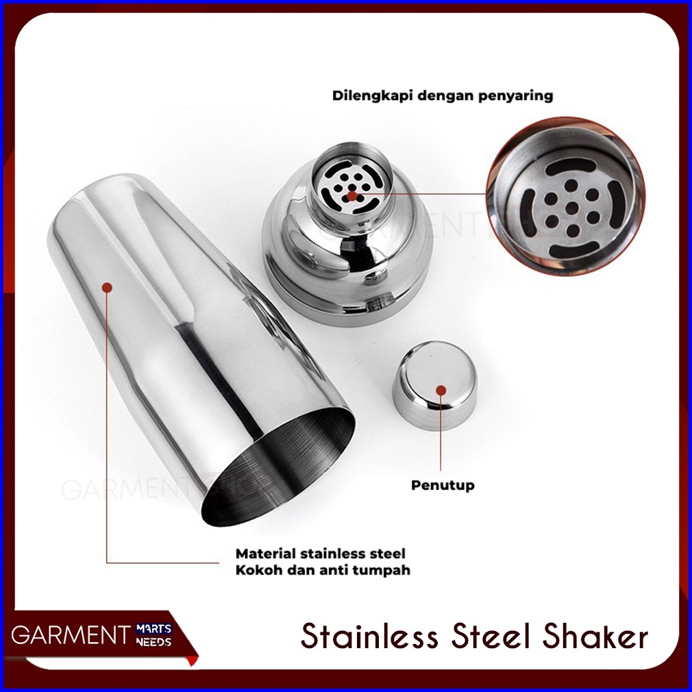 Shaker Cocktail Stainless Steel Botol Pengocok Minuman Plastik 350ml 550ml 750ml Alat Bar Barista Bartender Tools 300ml