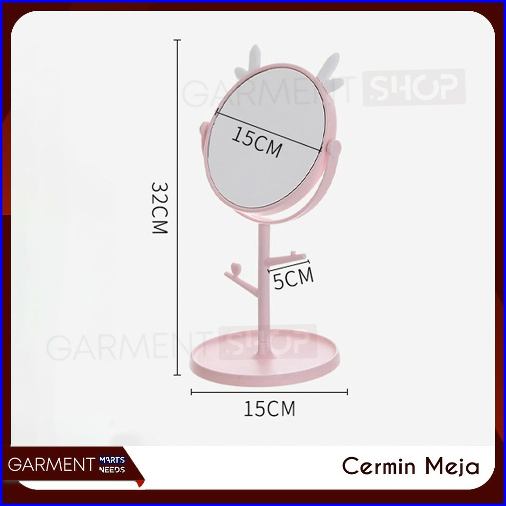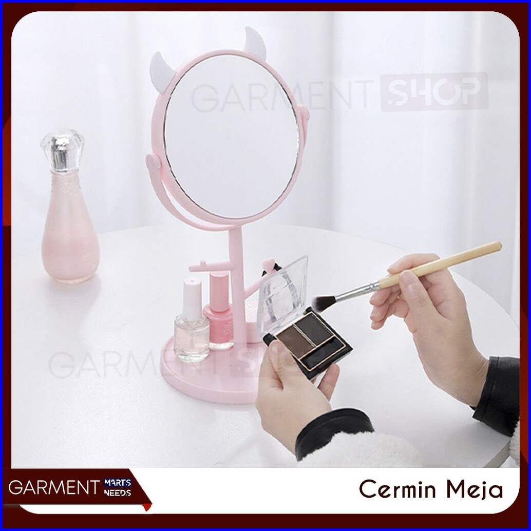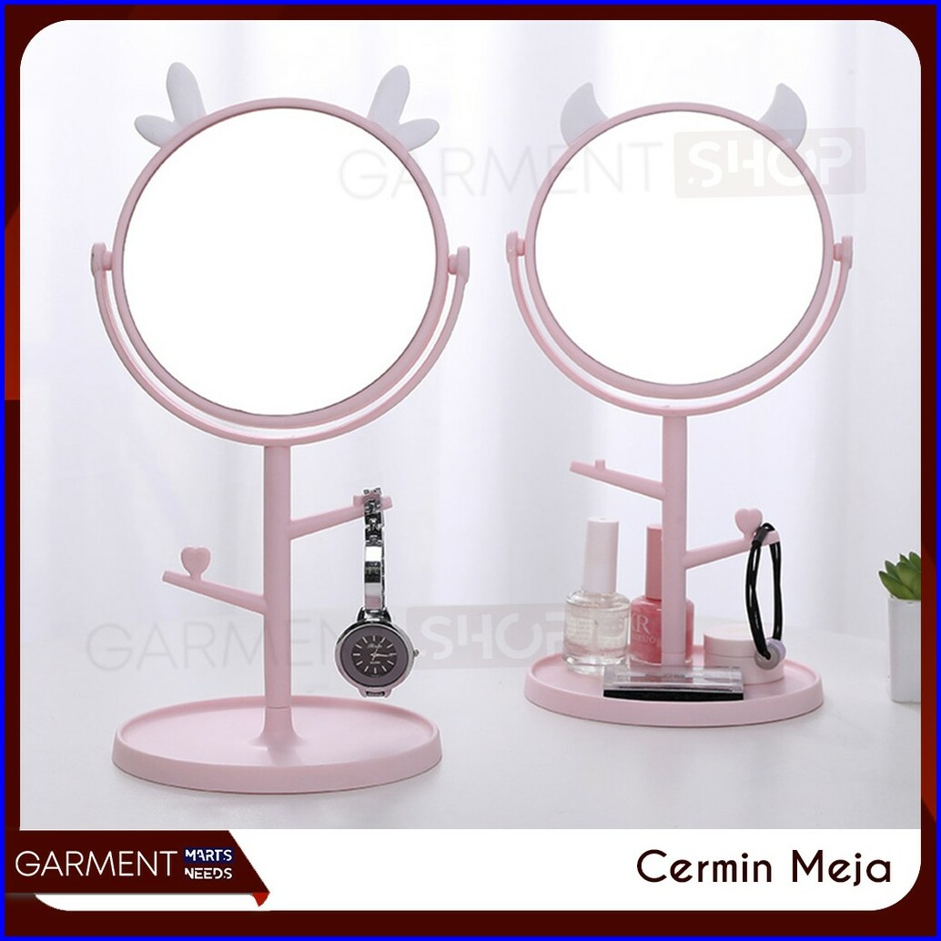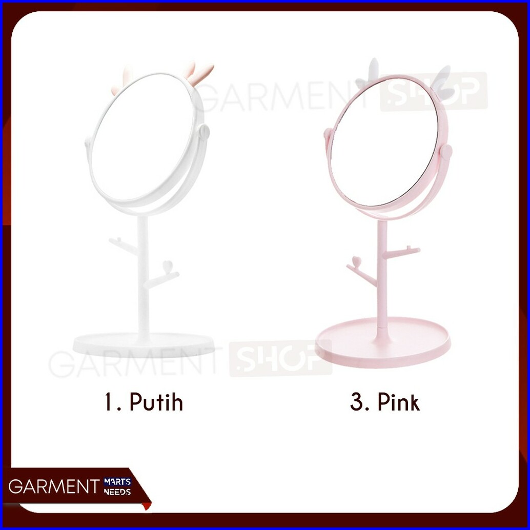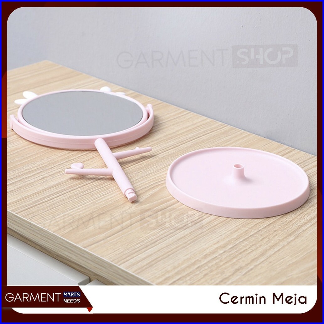 Cermin Kaca Meja Make Up Motif Kuping Telinga Standing Bulat