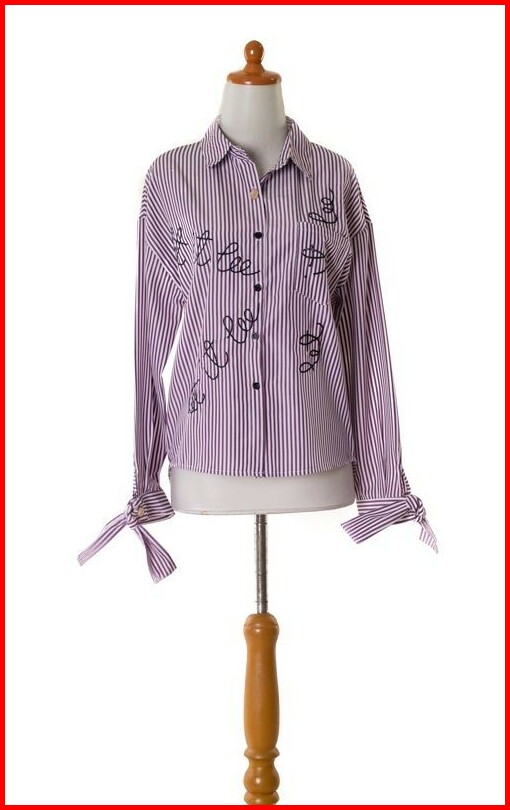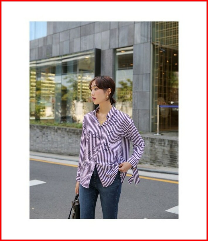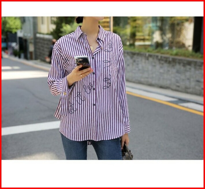 Baju Atasan Blouse Korea Red Purple Stripe S Import