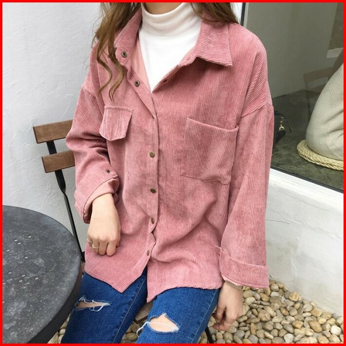 Yuruma Atasan Korea Kemeja Blouse Korduroi Desain Retro Wanita