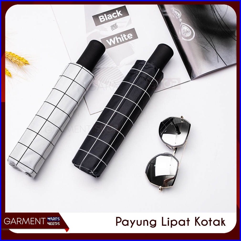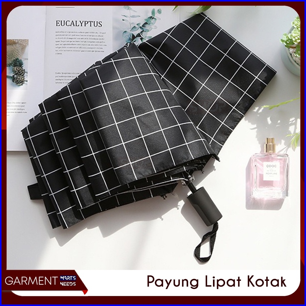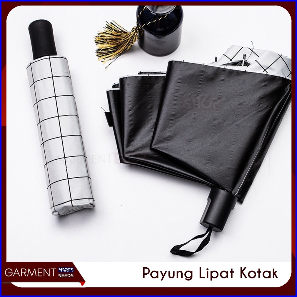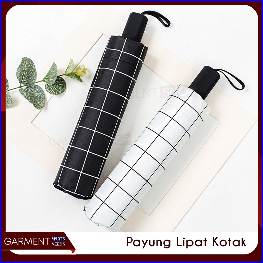 Payung Motif Kotak Estetik Lipat Anti Sinar Uv Matahari Folding Umbrella Tebal Bagus