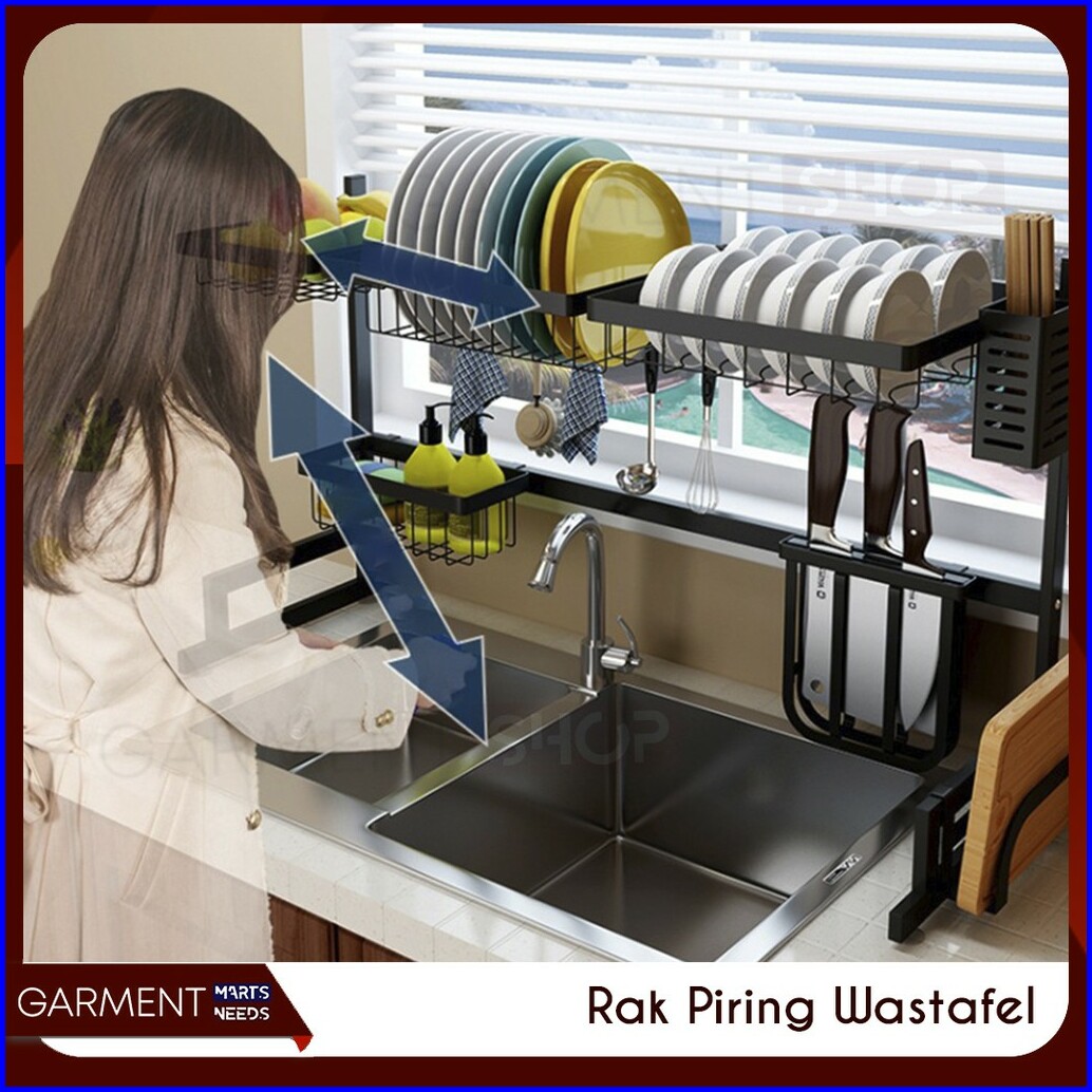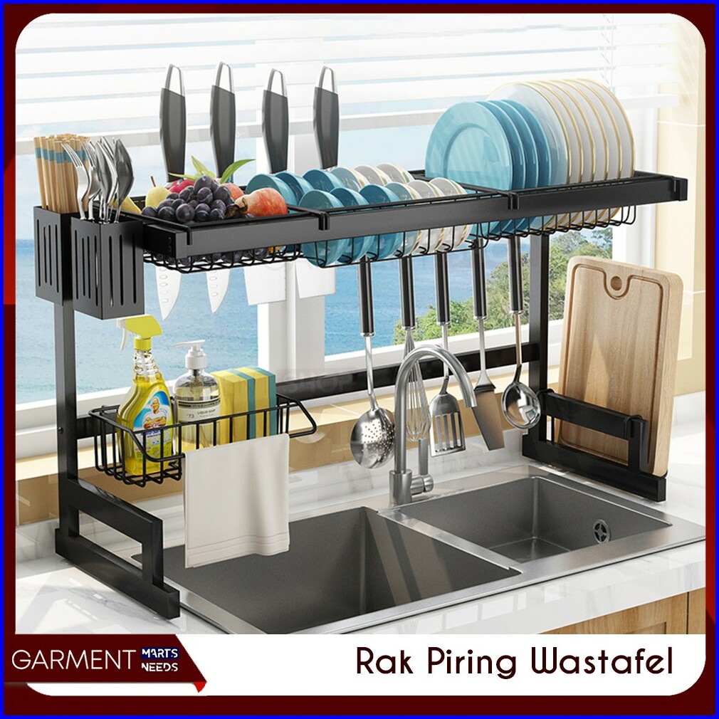 Rak Piring Wastafel 2 Susun Hitam Anti Karat Serbaguna