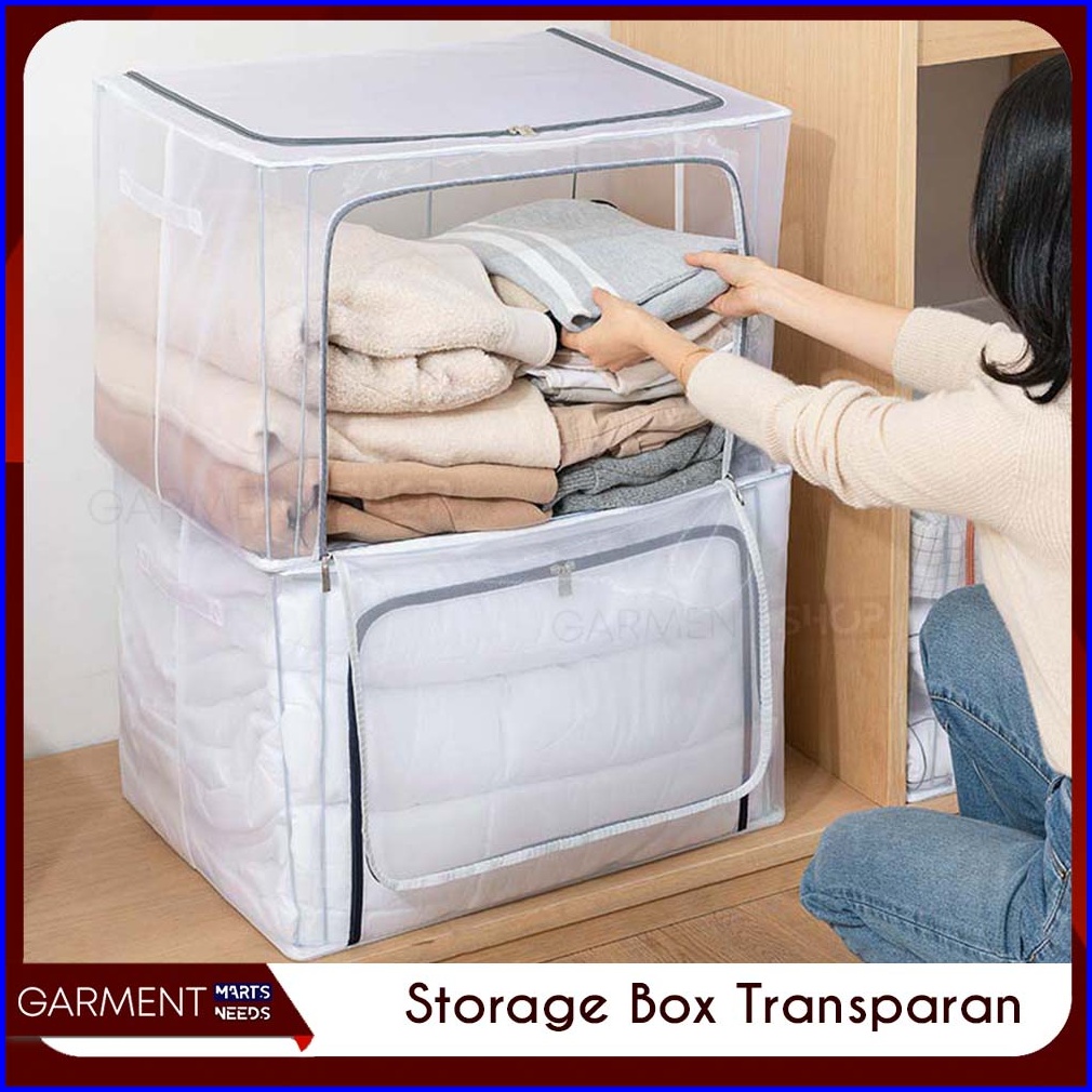 Storage Box Organizer Tempat Penyimpanan Selimut Baju Serbaguna Besar Dengan Besi Kawat Resleting